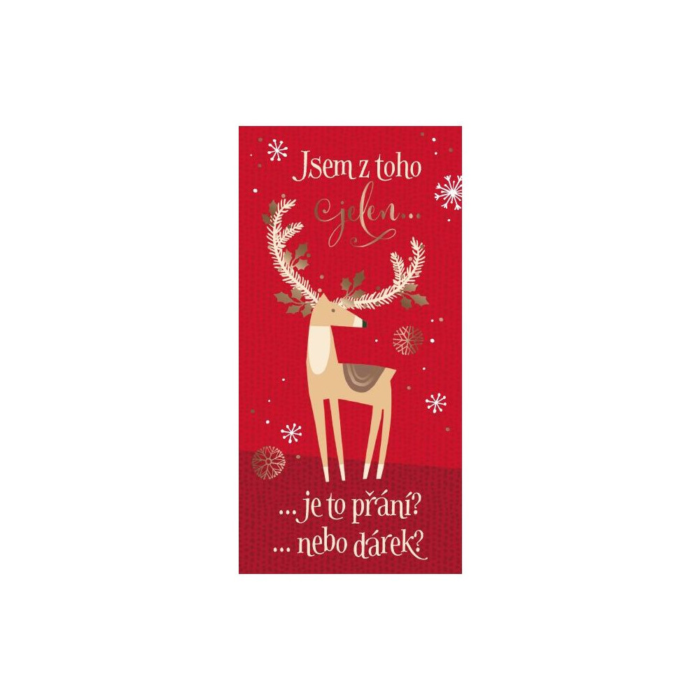 Obálka na peníze zaujme především vtipným nápisem Jsem z toho jelen...je to přání...je to dárek? Odklopte obě horní části a vložte hotovost či dárkový poukaz doprostřed.