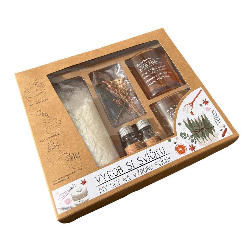Sada pro vlastní výrobu DIY vonných svíček obsahuje: