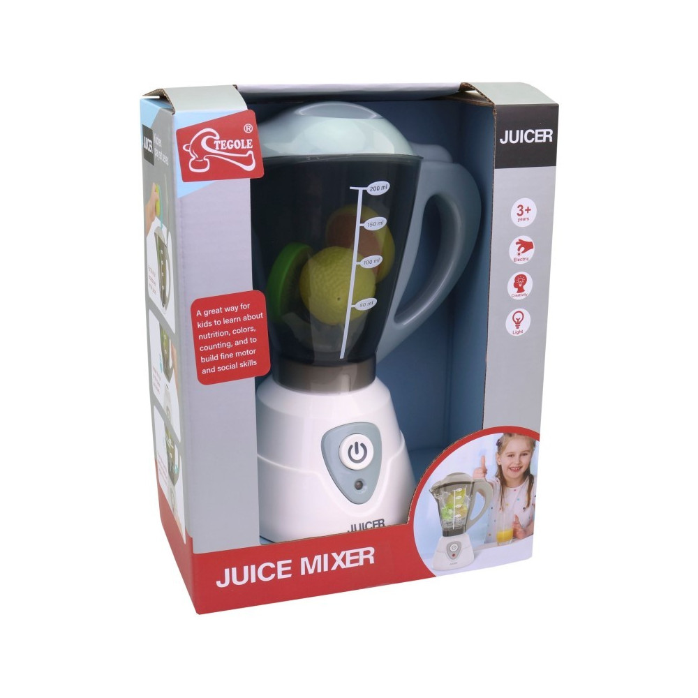 Dětský mixér na baterie s ovocem. Skvělý doplněk do každé správné dětské kuchyňky. Udělejte si džus plný vitamínů. Po vložení baterií vydává mixér realistický zvuk mixování.