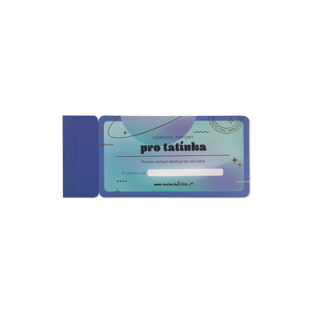 Knížka dárkových kuponů pro tatínka obsahuje: 13 kuponů malých radostí a gest, 2 speciální zlaté kupony s osobním vzkazem, prostor pro věnování.