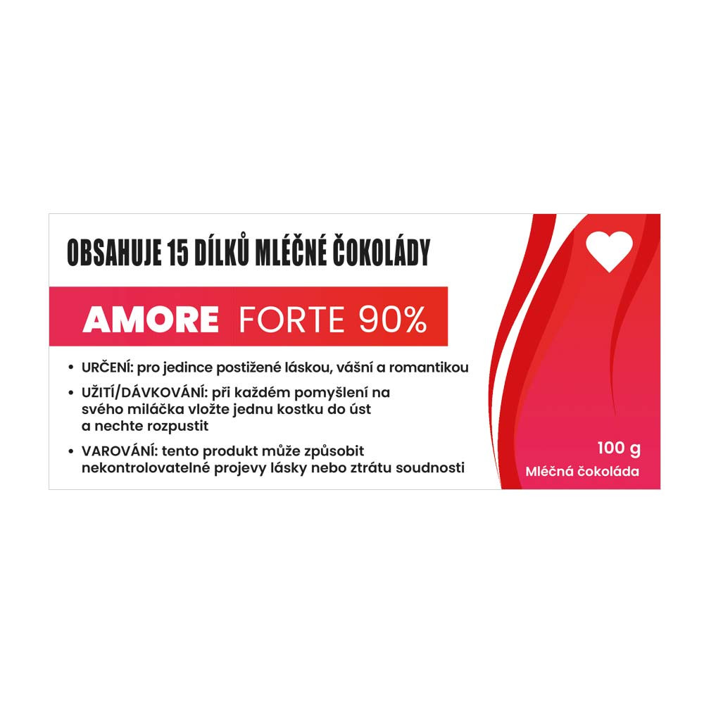 Čokoláda Amore Forte je určená pro všechny, kdo trpí záchvaty lásky, vášně a romantiky. Tento jedinečný dárek spojuje lahodnou chuť mléčné čokolády s humorem, který potěší každého zamilovaného. Ideální drobnost pro partnera, přítelkyni nebo manžela, který má smysl pro vtip a romantiku.
