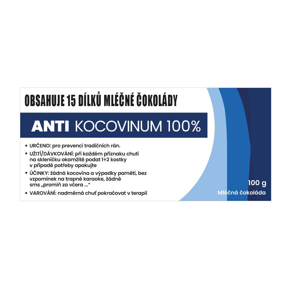 Sladká terapie pro všechny, kteří znají ten pocit po bujarém večírku. Dárková čokoláda Anti Kocovinum 100 % přináší zaručeně lepší náladu, a to bez vedlejších účinků – kromě závislosti na čokoládě. Ideální dárek pro kamaráda, kolegu nebo každého, kdo má smysl pro humor (a občas i pro skleničku).