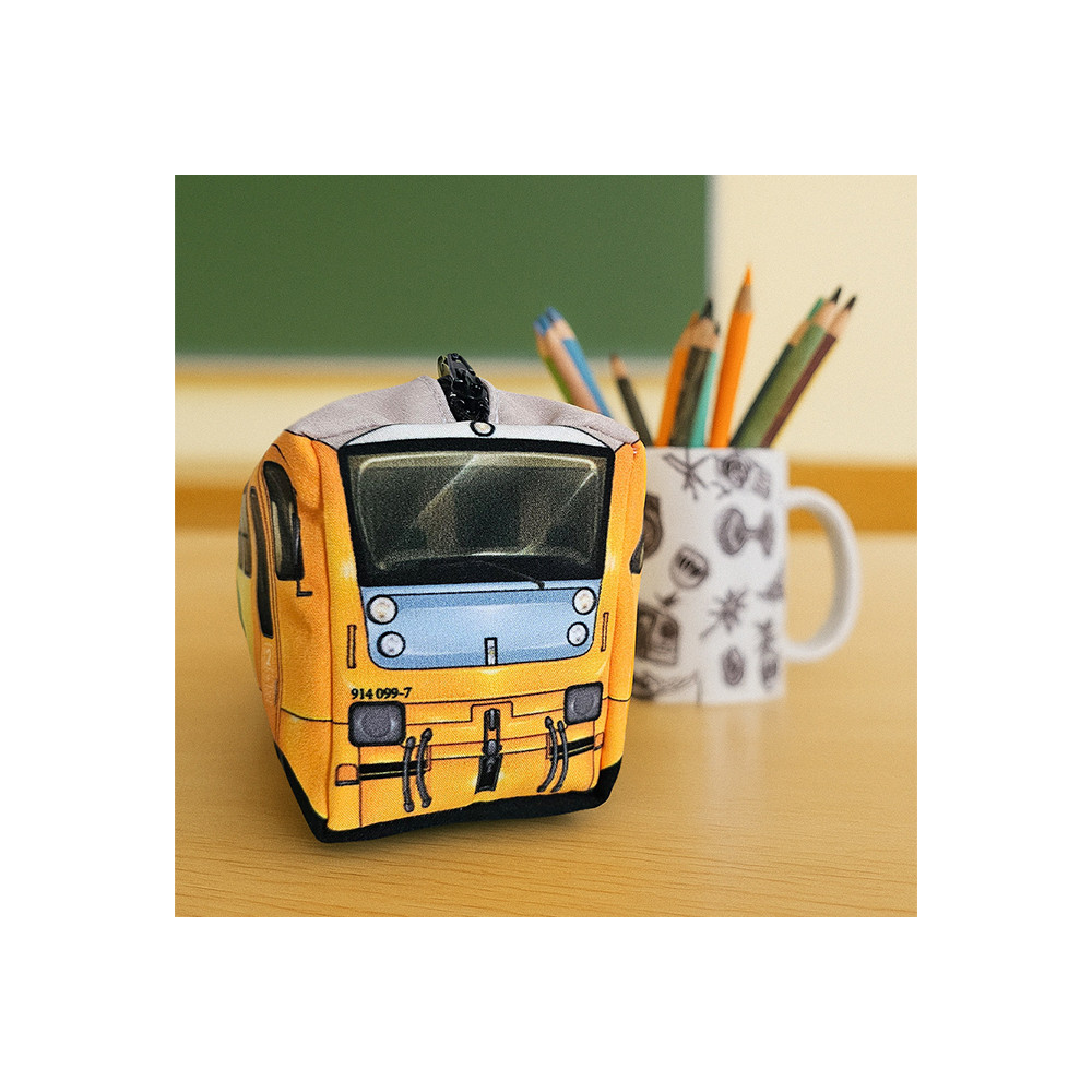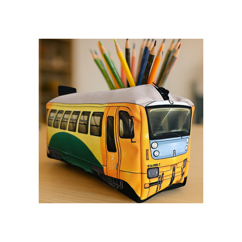Praktický a originální penál pro všechny milovníky železnice! Tento detailně zpracovaný penál věrně napodobuje legendární motorový vůz řady 814. Vyroben z odolného materiálu, který chrání vaše psací potřeby, pastelky či drobnosti. Uzavírá se kvalitním zipem po celé délce, takže obsah je snadno přístupný. Ideální do školy, na cesty i jako sběratelský kousek. Rozměry jsou přizpůsobeny běžným psacím potřebám.