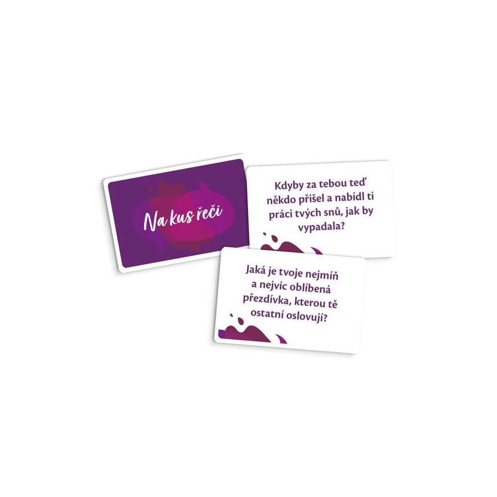 Na kus řeči jsou sady konverzačních karet, jejichž účelem je pomoci rozproudit či obohatit rozhovory o zajímavá témata, k nimž se třeba často obtížně hledají cesty.