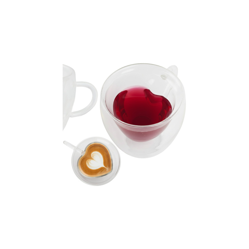 Skleněný hrníček, který zvýrazňuje tvar srdce po nalití nápoje. Dvojité stěny poskytují tepelnou izolaci, díky čemuž horký nápoj nespálí vaše ruce a studené nápoje zůstanou déle chladné. Ideální dárek z lásky třeba na Valentýna.