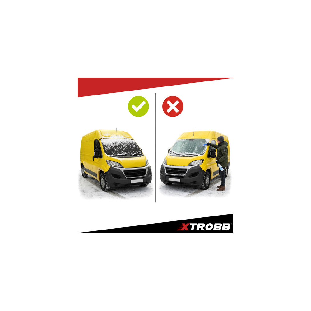 Zimní rána mohou zkazit začátek dne, když je vaše čelní sklo pokryté ledem nebo sněhem. Protimrazový kryt stačí upevnit na čelní sklo pomocí popruhů s klipem. Materiál je vodotěsný a mrazuvzdorný, takže nepřimrzne k povrchu skla a ráno tak usnadní cenné minuty při odjezdu do práce.