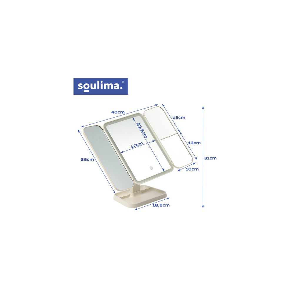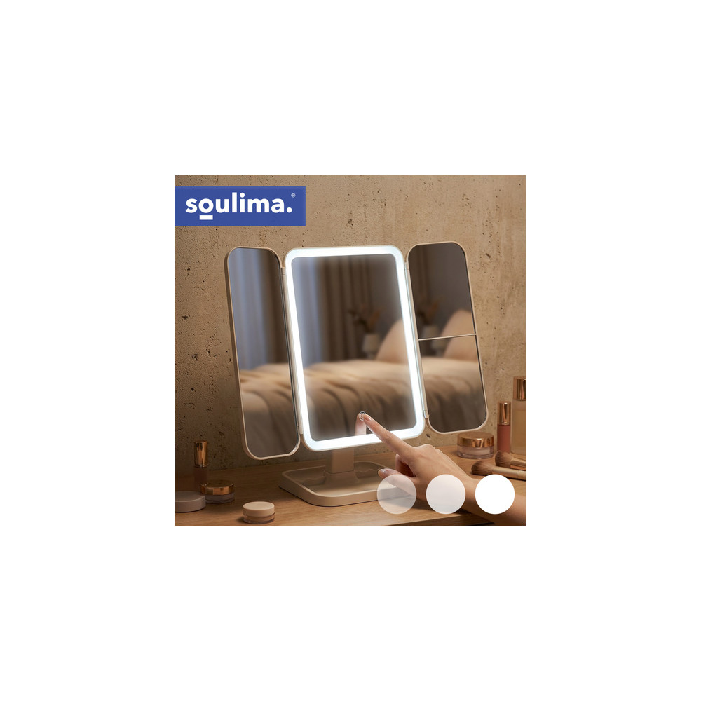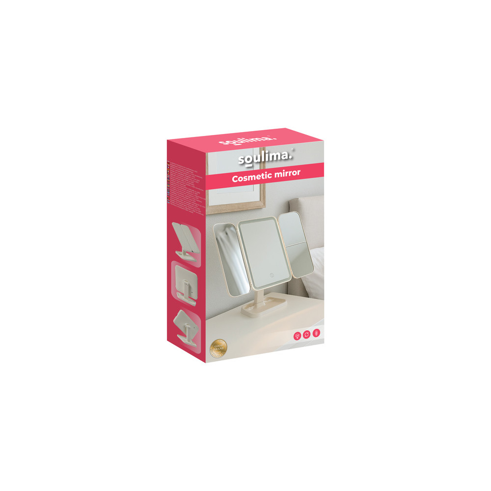 Elegantní skládací kosmetické zrcátko promění obyčejný toaletní stolek v malé kosmetické studio. Trojdílný rozkládací design s hlavním zrcátkem a dvěma bočními panely vám umožňuje vidět obličej a účes z více perspektiv. Zvětšovací funkce také usnadňuje konkrétní úpravy.