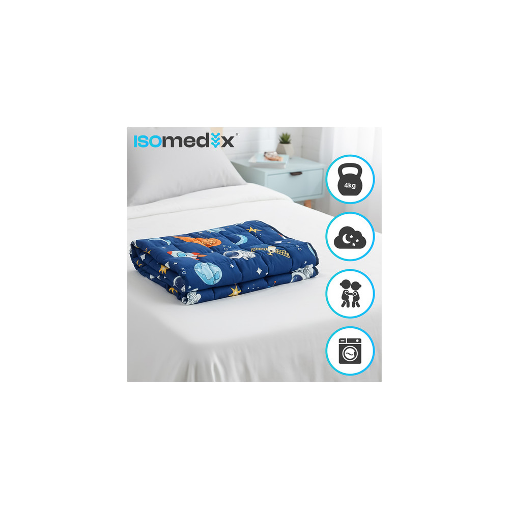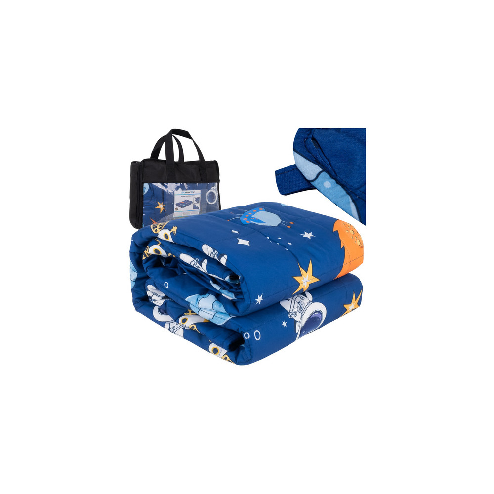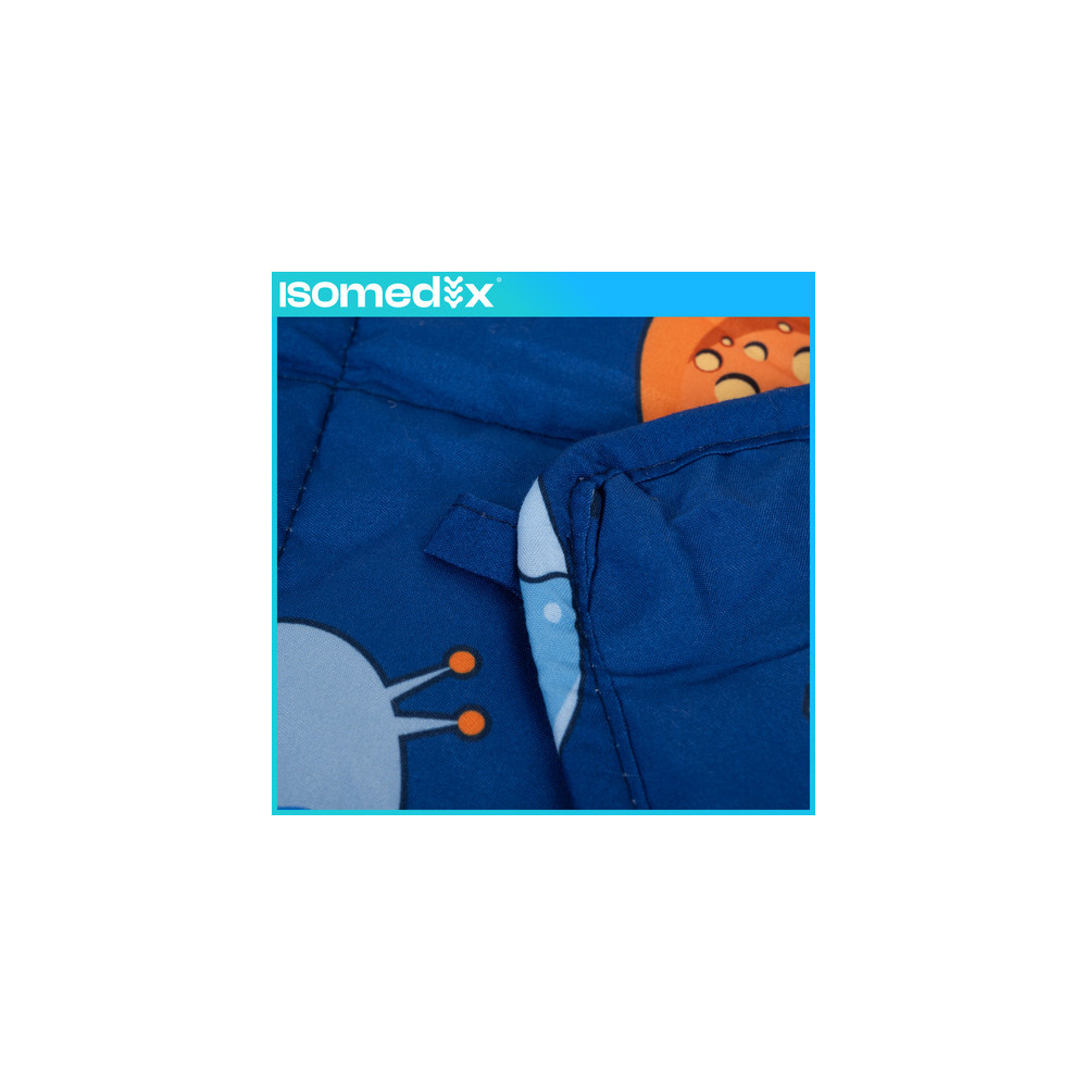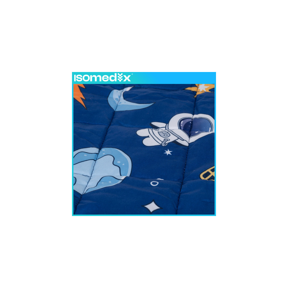 Zátěžová deka je vhodná pro děti, které potřebují větší pocit bezpečí při spánku, jsou hyperaktivní nebo mají jiné smyslové poruchy. Skleněné mikrokuličky obsažené v dece vytvářejí uklidňující tlak, který podporuje relaxaci a snižuje napětí. Látka je příjemná na dotek a má potisk, který se dětem zalíbí.