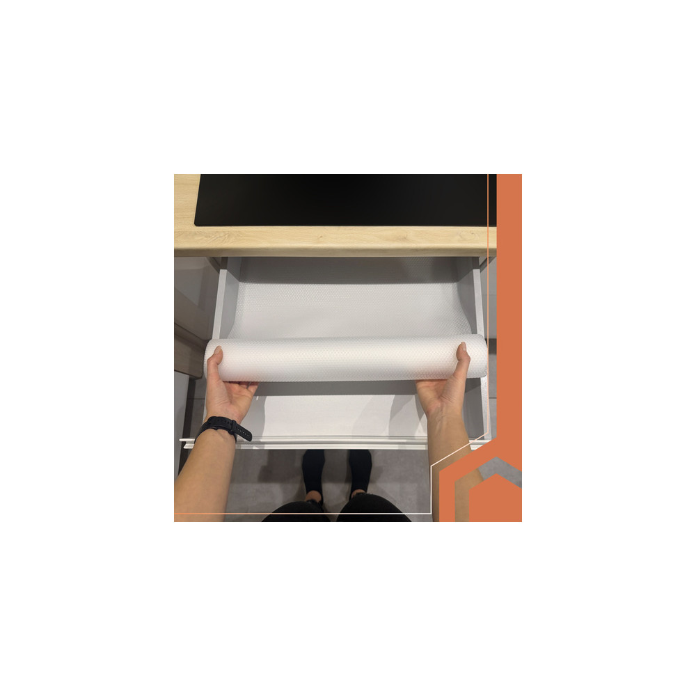Protiskluzová podložka vhodná do zásuvek a skříněk. Chrání nábytek proti škrábancům, nečistotami a vlhkosti. Stačí si ji nastříhat dle potřeby a rozměru dané skříňky.