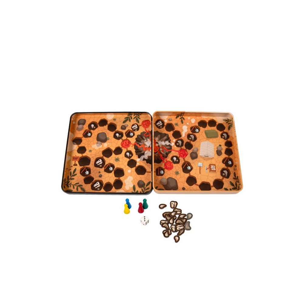 Hráči začínají na břehu a pohybují se pomocí kostky, přičemž fosilii získají pouze při přesném zastavení na příslušném políčku. Cestu znepříjemňují nástrahy: lávové pole vrátí hráče zpět na start a zlomená lopata znamená stopku na jeden tah. Vítězem se stává ten, kdo jako první shromáždí všech 5 žetonů fosilií.