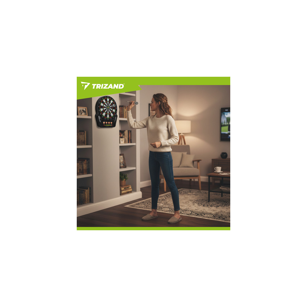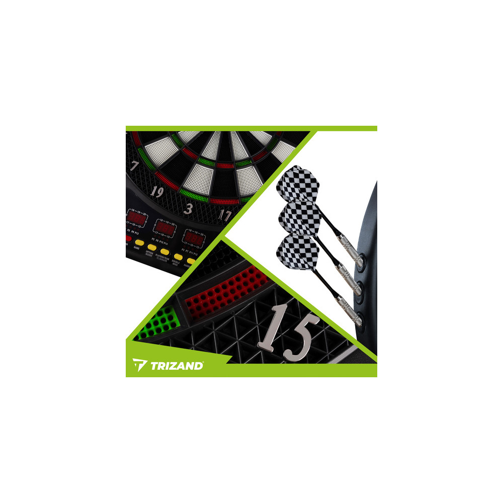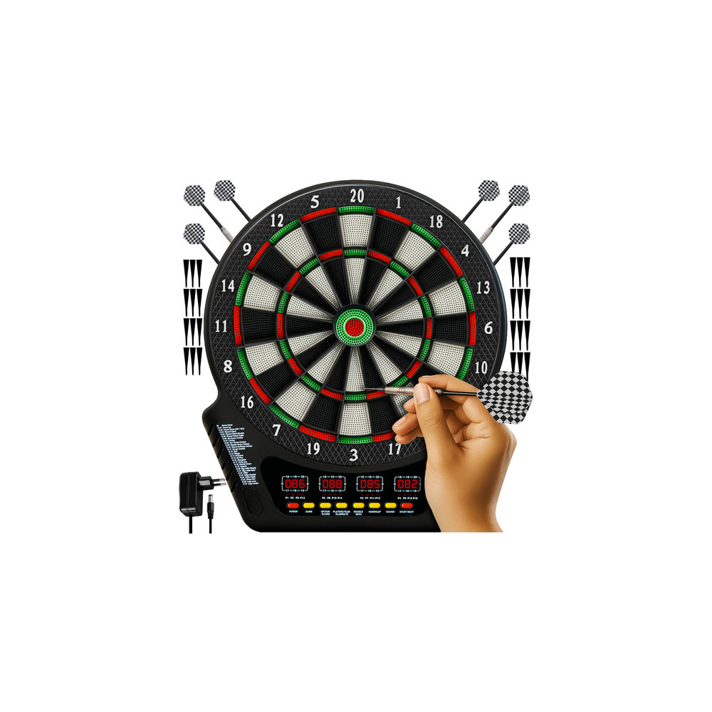 Elektronický terč na šipky s automatickým bodováním a zvukovými efekty zaujme dospělé i děti. Spojuje soutěživost, přesnost i zábavu. K dispozici je 27 her s 243 herními režimy. Terč má 8 stupňů ovládání hlasistosti, včetně celkového ztlumení.
