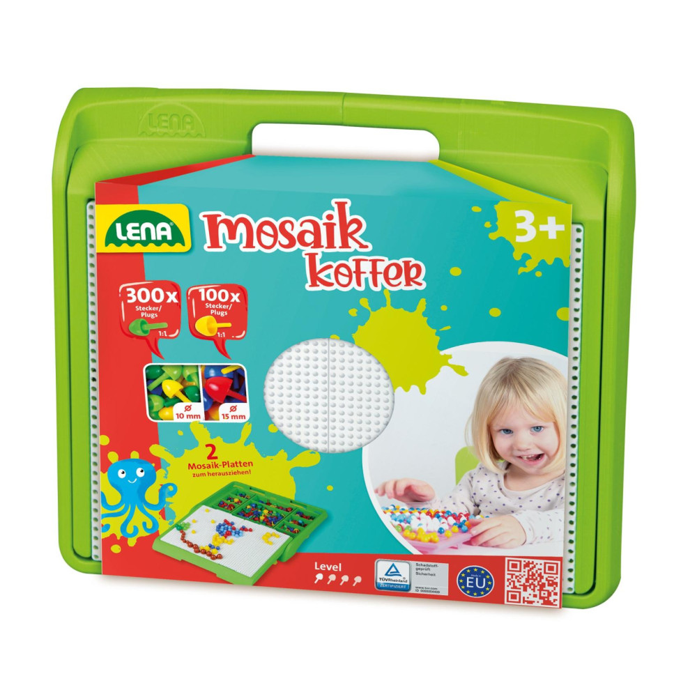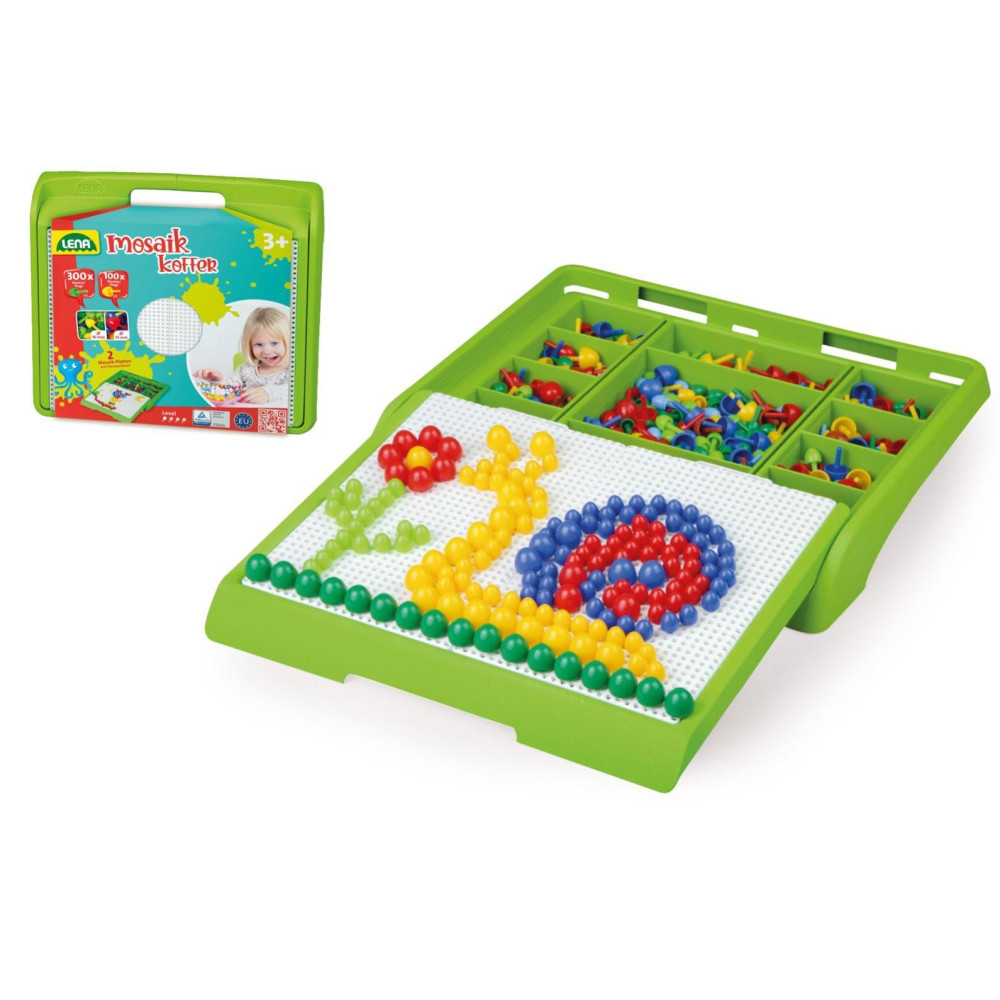 Kufřík obsahuje 300 ks barevných kolíčků 10 mm a 100 ks barevných kolíčků 15 mm.