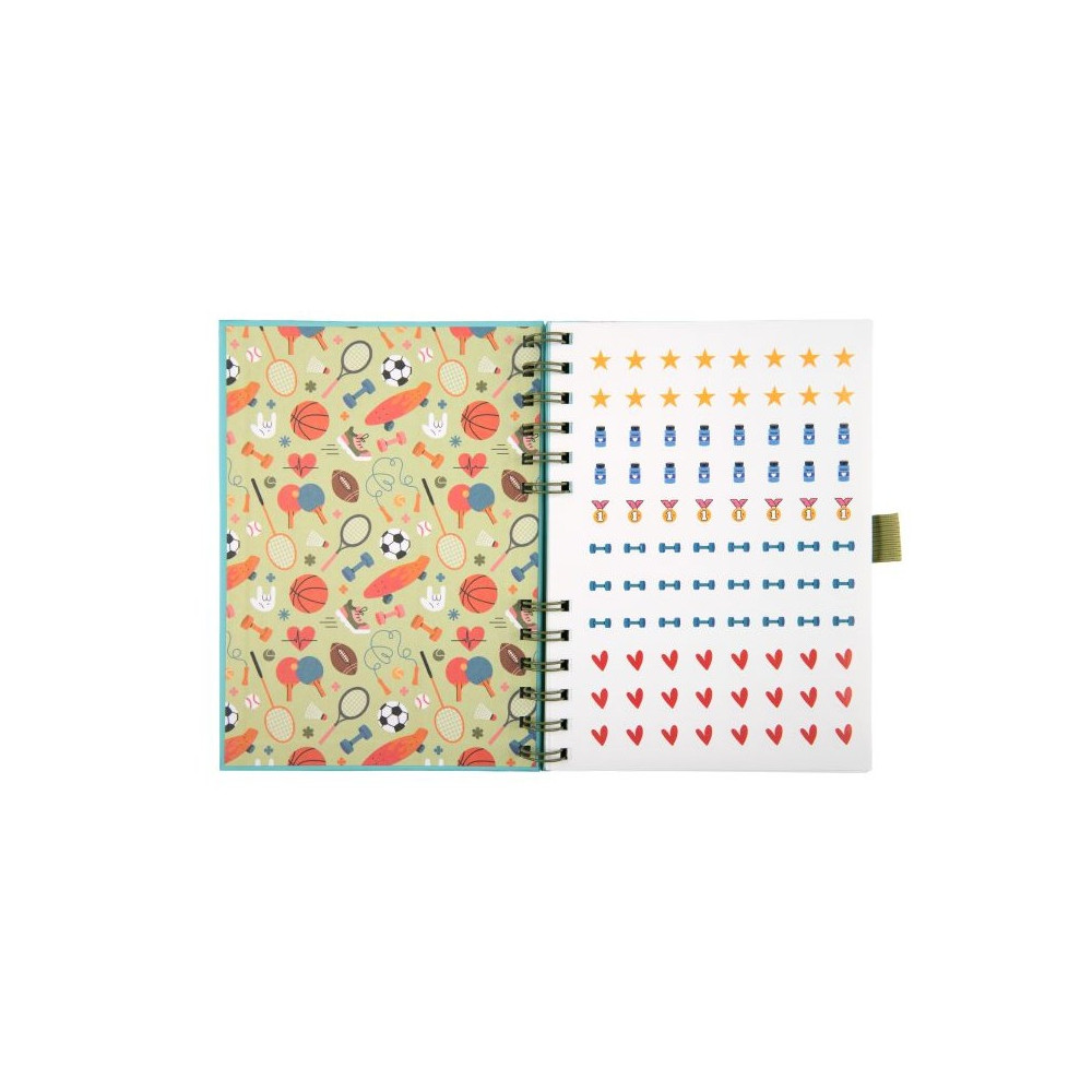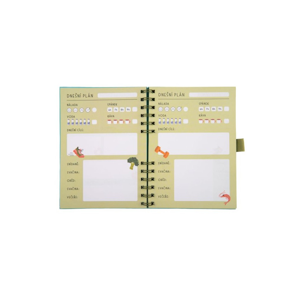 Kroužková vazba, gumička na zavírání a očko pro psací potřeby - to vše zajišťuje, že deník vydrží váš aktivní životní styl a bude vždy připraven k rychlému zápisu, ať už jste kdekoliv. Součástí deníku je i set úžasných samolepek! Využijte je k vizuálnímu oživení svých záznamů a odměňování splněných milníků. Přidejte svému plánování styl a pořádnou dávku motivace. Pár zápisů denně, a uvidíte, jak rychle posouváte své limity.