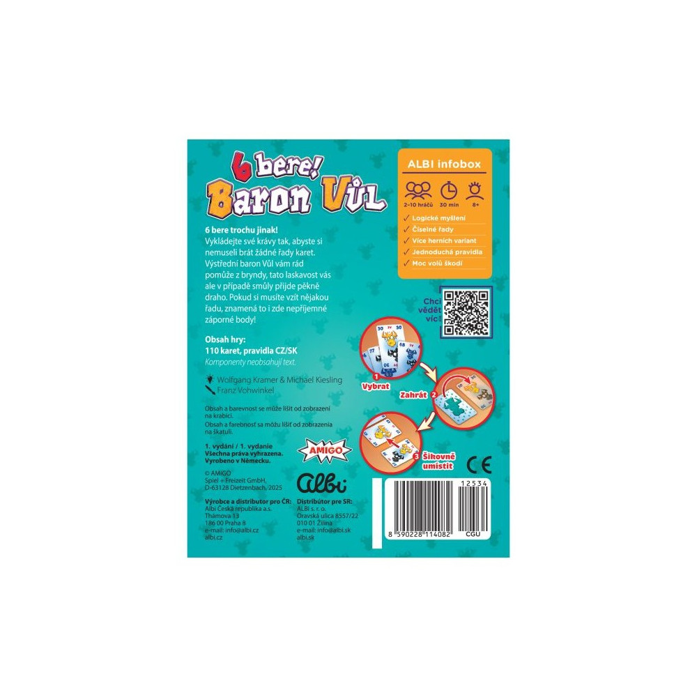 Trochu jiná verze oblíbené karetní hry 6 bere!, která přináší nový herní prvek v podobě excentrického Barona Vola. Vykládejte své krávy tak, abyste si nemuseli brát žádné řady karet. Výstřední baron Vůl vám rád pomůže z bryndy, tato laskavost vás ale v případě smůly přijde pěkně draho. Pokud si musíte vzít nějakou řadu, znamená to i zde nepříjemné záporné body!