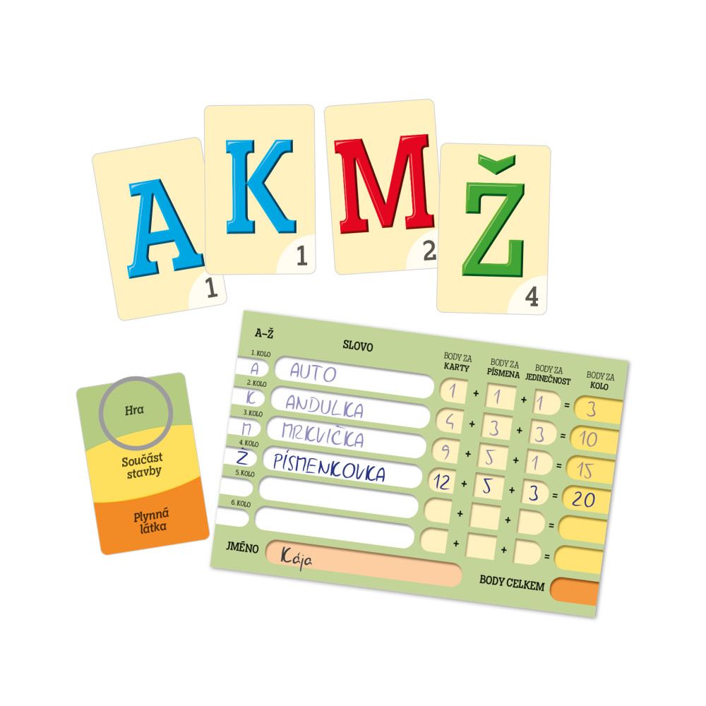 Netradiční slovní párty hra, ve které vítězí bohatá slovní zásoba a pevné nervy. Rozvíjí jazykové schopnosti, trénuje slovní zásobu, postřeh, kreativitu i soutěžního ducha.