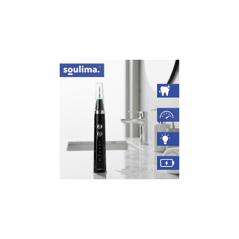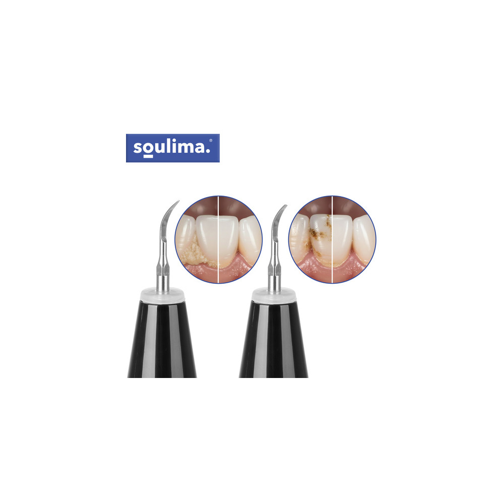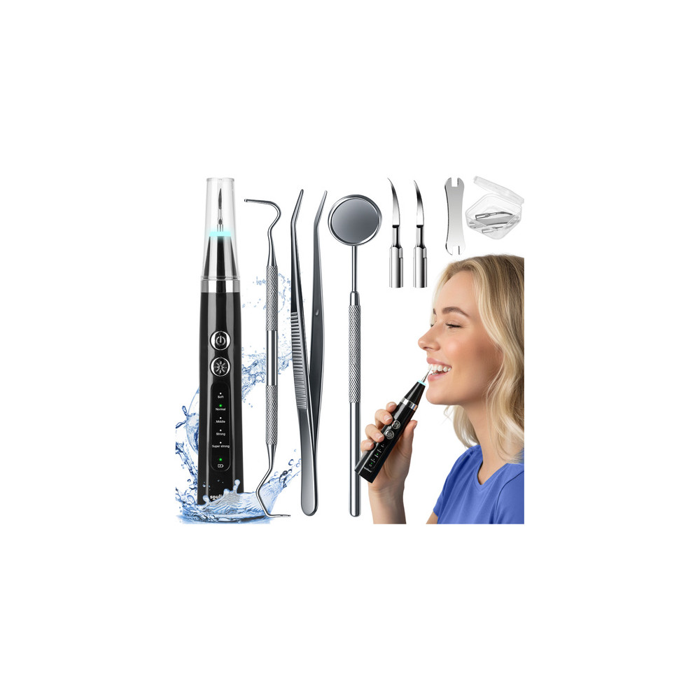 Ultrazvukový odstraňovač zubního kamene je moderní zařízení určené pro účinné a bezpečné odstranění vodního kamene, usazenin a zabarvení . Díky nastavení až pěti úrovní intenzity poskytuje nástroj profesionální hygienické výsledky v pohodlí domova. LED podsvícení usnadňuje práci na těžko dostupných místech a účinná baterie umožňuje několik hodin používání bez nabíjení. Výkon si můžete přizpůsobit přesně podle svých potřeb od šetrného odstraňování usazenin až po intenzivní působení na tvrdý kámen.