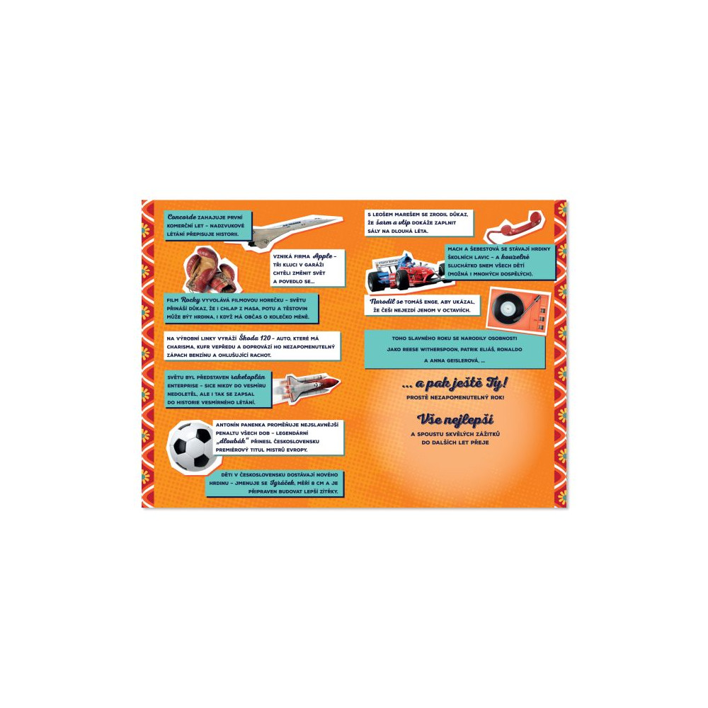 Originální přání s motivem roku narození. Na přání najdete zajímavé události, které se v daném roce staly, a také známé osobnosti, které se v témže roce narodily.