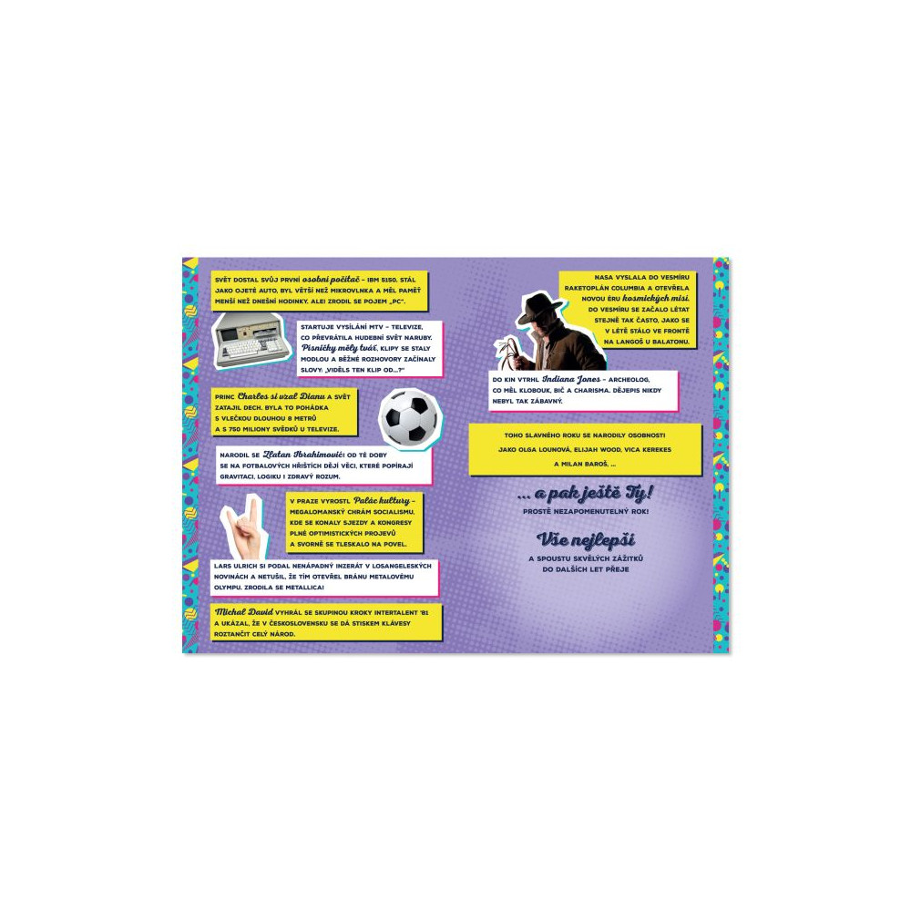 Originální přání s motivem roku narození. Na přání najdete zajímavé události, které se v daném roce staly, a také známé osobnosti, které se v témže roce narodily.