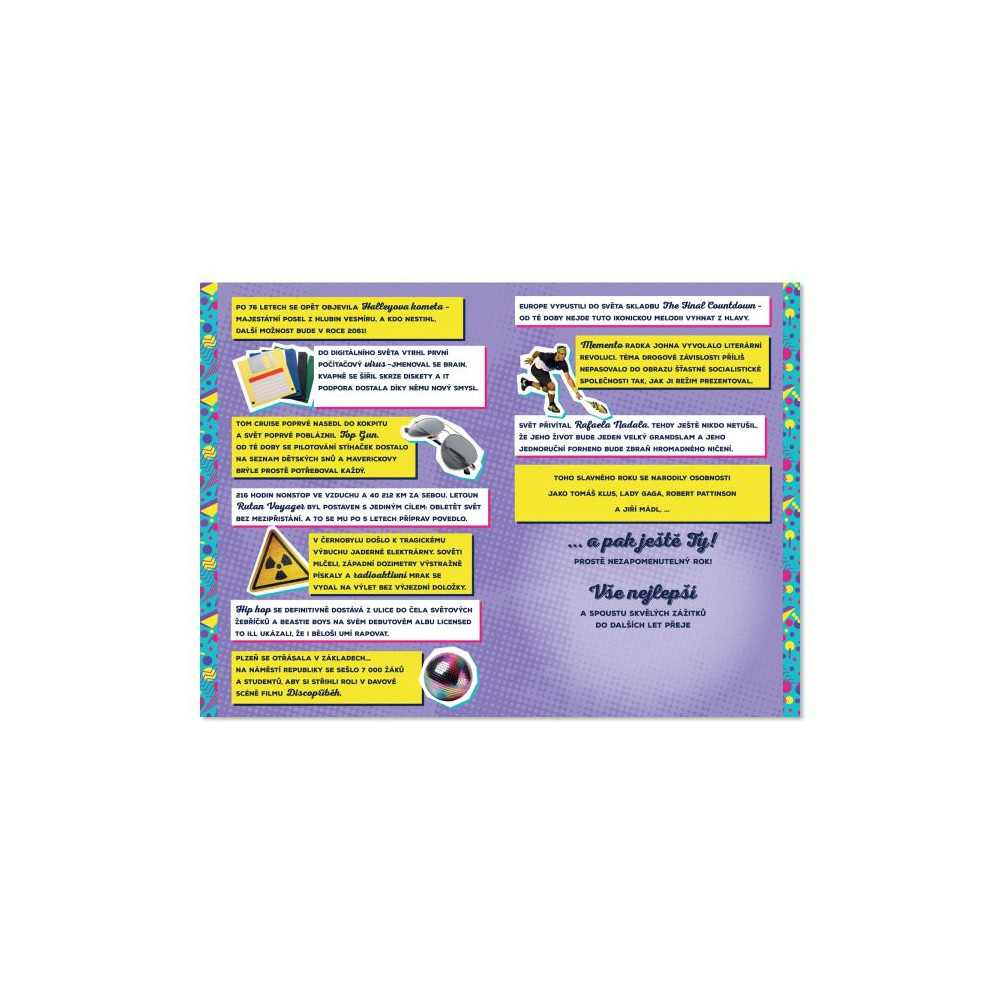 Originální přání s motivem roku narození. Na přání najdete zajímavé události, které se v daném roce staly, a také známé osobnosti, které se v témže roce narodily.