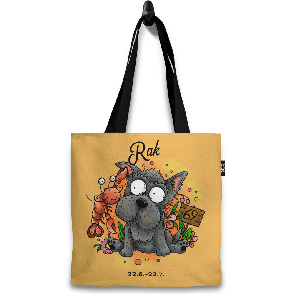 Přestaňte se trápit papírovými taškami na jedno použití a zazařte originální taškou s veselým potiskem. Taška s motivem znamení ve vyobrazení s pejsky je z pevné textilie, která je otěruvzdorná, a proto tašku jen tak nezašpiníte. A pokud přeci jen ano, můžete ji bez obav vyprat v pračce. Taška má klasické rozměry, takže se do ní bez obav vejde menší nákup či pomůcky do školy nebo do práce.