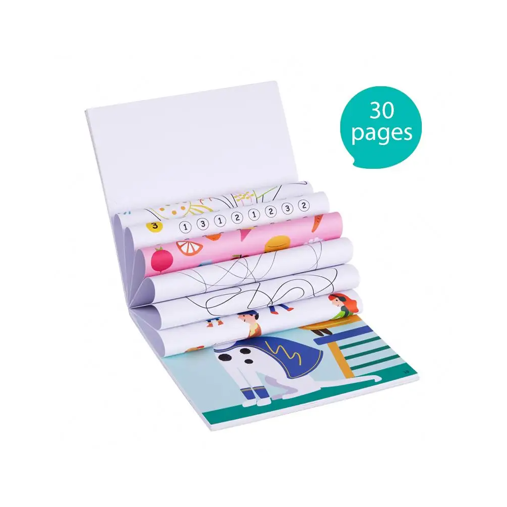 Domaluj si krásné obrázky svými prsty! Blok Malování prstovými barvami od Tookyland obsahuje 30 listů s předlohami s nejrůznějšími motivy. Děti si je můžou dotvořit zcela podle sebe pomoci prstových barev. Úroveň 2 poskytuje kreativní zábavu nadšeným umělcům. Děti se můžou pořádně kreativně vyřádit a popustit uzdu své fantazii.