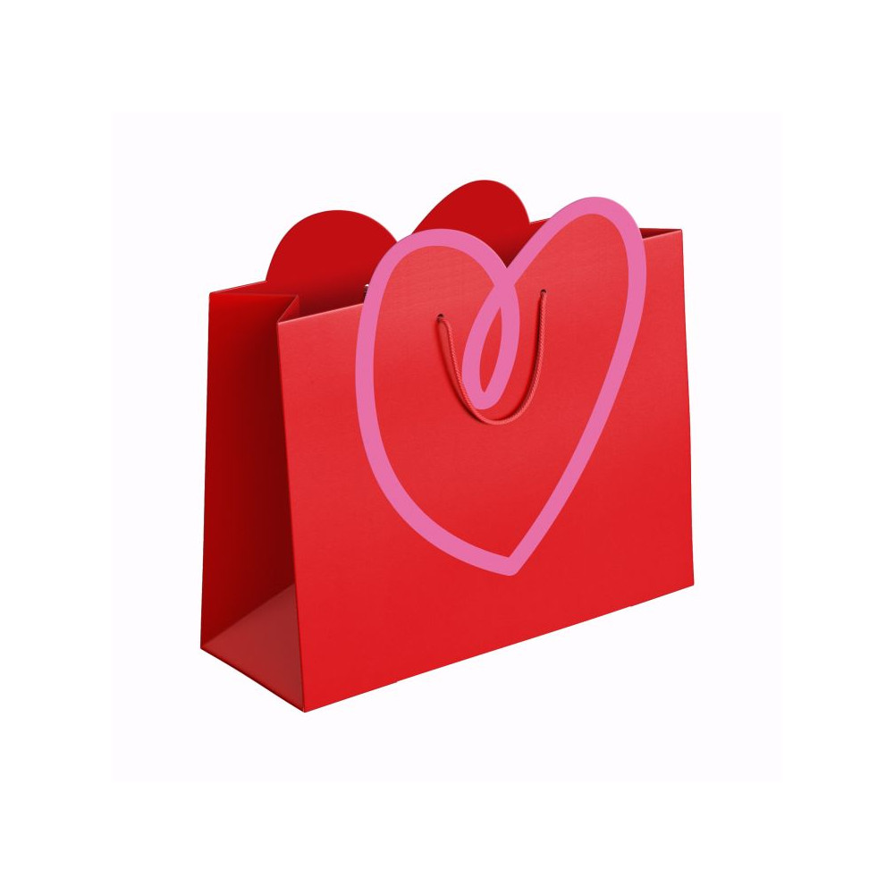 Papírová dárková taška s výřezem srdce v červené barvě.