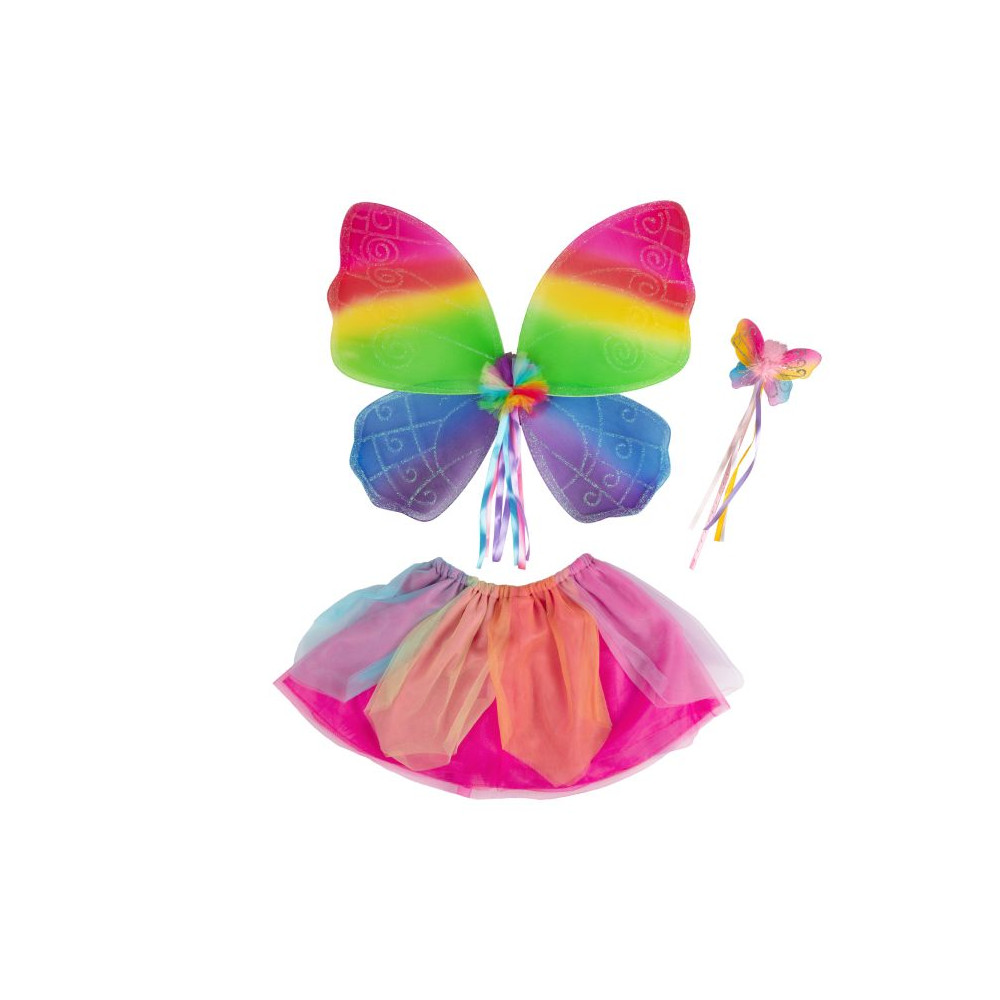 Set tří doplňků ve velikosti 3-4 roky je ideální k dotvoření kostýmu duhové víly na tematickou párty, karneval nebo jen tak na hraní.