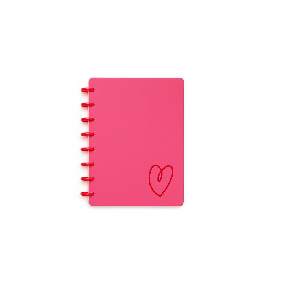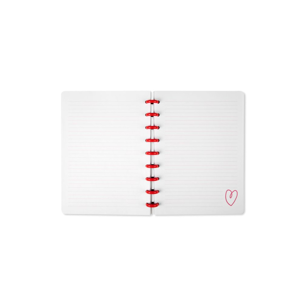 Růžový blok s červeným srdcem na obalu je opatřen kroužkovou diskovou vazbou a vhodný jako dárek na Valentýna. Uvnitř najdete linkované stránky, ideální na strukturované poznámky.