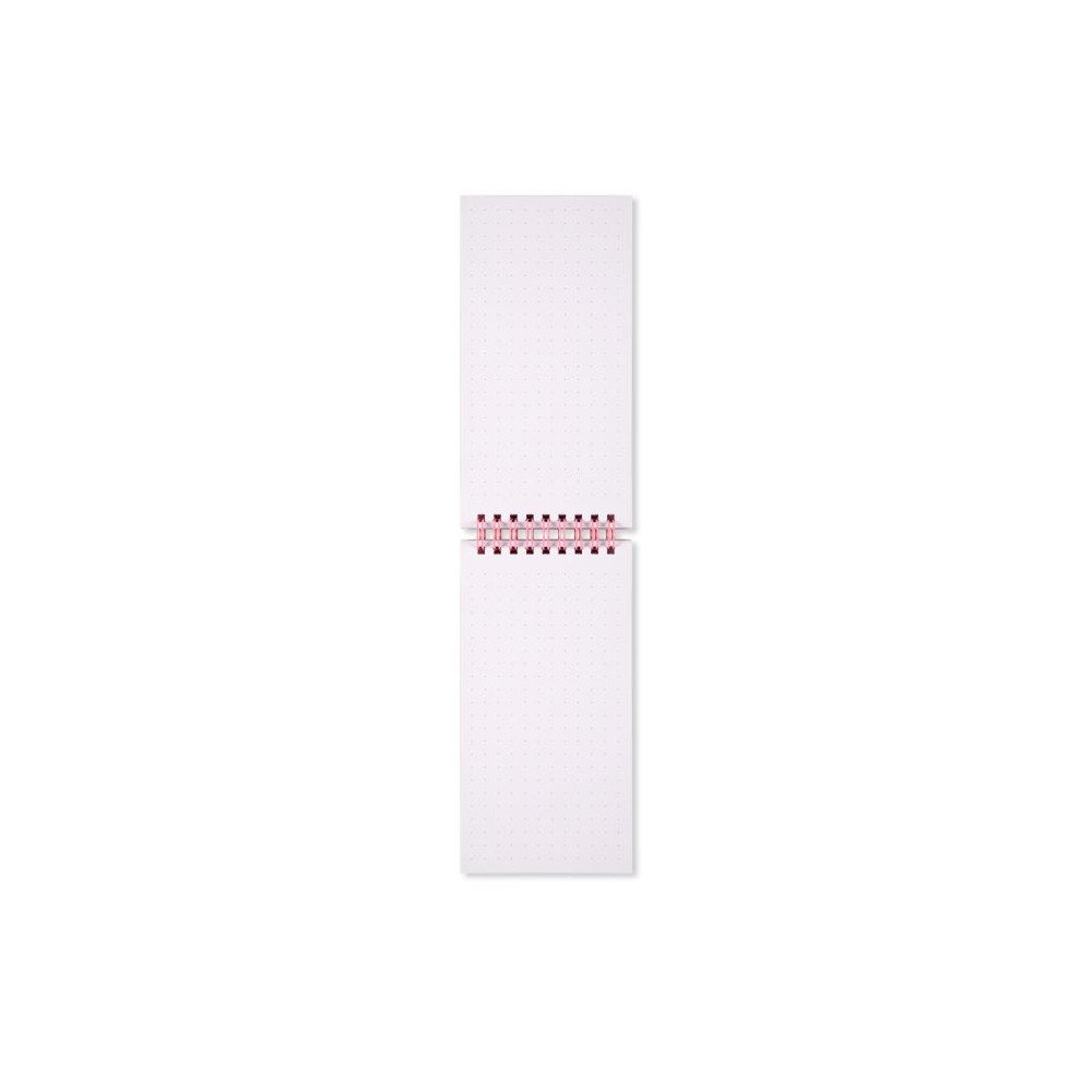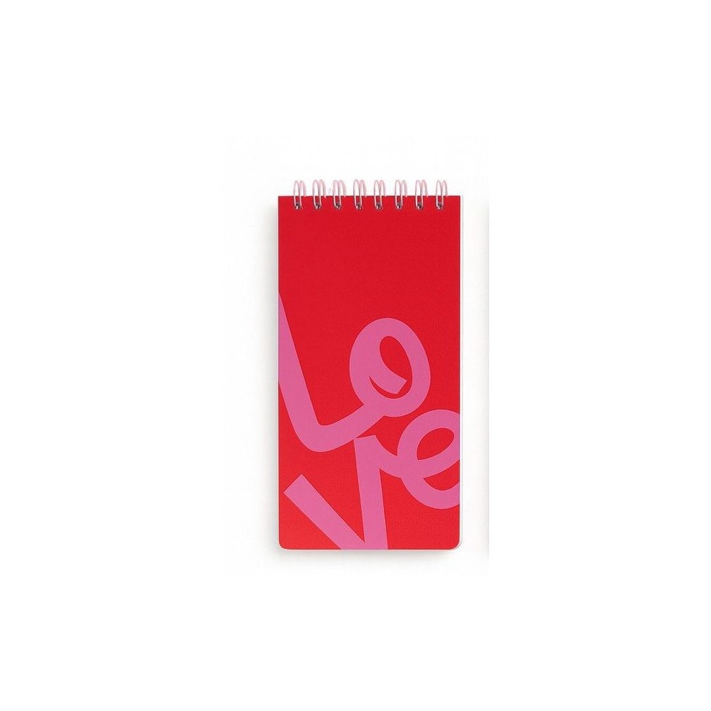 Spirálový blok s nápisem Love má tečkované stránky.