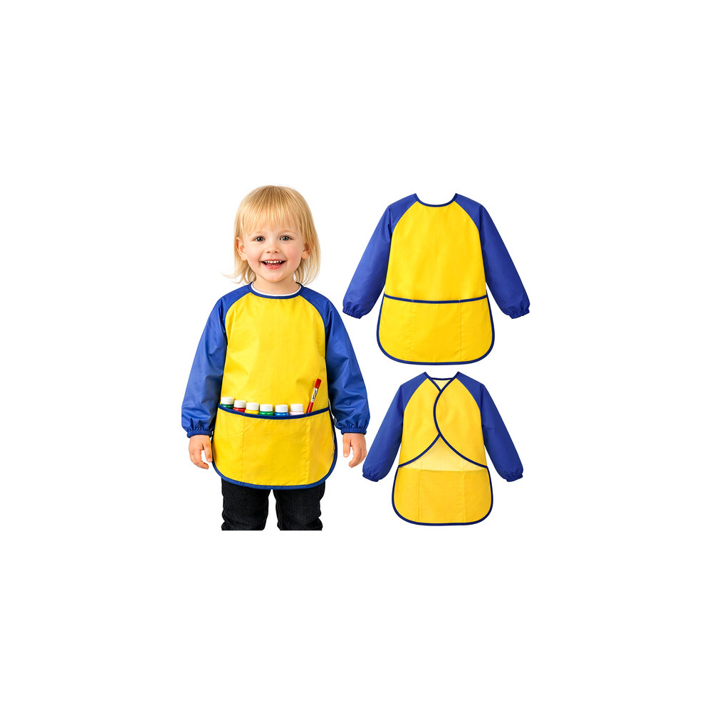 Dětská voděodolná ochranná zástěra na malování. Díky ní mohou děti experimentovat bez omezení. Bude se hodit doma, ve školce a případně i v kuchyni. Dlouhé rukávy s elastickými okraji chrání ruce až po zápěstí a při pohybu se nevytahují nahoru. Použitou zástěru postačí otřít a nebo případně vyprat na 30 °C. Zepředu jsou na zástěře praktické kapsičky.
