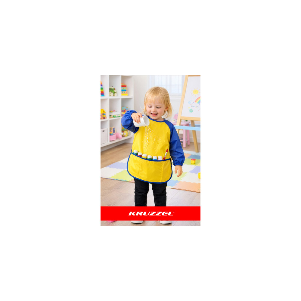 Ochranná zástěra pro děti na malování, kuchyňská zástěra pro děti 98-122 Polská značka KRUZZEL - zástěra nejvyšší kvality Dětská ochranná malířská zástěra KRUZZEL, voděodolná, s rukávy 98 - 122 cm / 3-7 let Každé dítě by si mělo mít možnost volně hrát bez neustálého hlášky „pozor, neušpiň se“. Ochranná zástěra KRUZZEL pro děti byla vytvořena, aby malí umělci mohli malovat, kreslit a experimentovat bez omezení. Je to každodenní pohodlí, klid a více radosti z kreativní hry - doma, ve školce a v kuchyni. Nejdůležitější výhody zástěry KRUZZEL účinná ochrana oblečení - voděodolný materiál vytváří ochrannou bariéru pro oblečení proti barvám, lepidlu a inkoustu, díky čemuž dítě se může soustředit pouze na hraní plné pokrytí rukou a paží - dlouhé rukávy s elastickými pásky chrání vaše ruce až po zápěstí a při pohybu se netahají nahoru svoboda a pohodlí při nošení - volný střih neomezuje pohyb, umožňuje vám dosáhnout, ohýbat se a tvořit bez omezení snadné čištění bez námahy - stačí otřít nebo vyprat při 30 °C, zástěra schne to rychle a je připraven k opětovnému použití praktické kapsy - vše, co malý umělec potřebuje, má vždy po ruce: štětce, pastelky a kapesníky trvanlivost po mnoho let - materiál odolný vůči skvrnám Neztrácí barvu, neopotřebovává se a vydrží mnoho intenzivních her bezpečnost potvrzená normami - zástěra splňuje evropské normy, bezpečné pro citlivou dětskou pokožku Technické specifikace zástěry KRUZZEL kompatibilita: Evropské bezpečnostní normy vodotěsný : ano rukávy: dlouhé s elastickými manžetami kapsy: 3 prostorné kapsy vpředu velikost: S / 98 - 122 cm, určené pro děti ve věku 3 - 7 let spona: suchý zip péče: praní na 30 °C, rychleschnoucí, nežehlit rozměry: 55 x 40 cm délka rukávu: 44 cm Váhy: 0,038 kg hmotnost v balení: 0,046 kg maracas: KRUZZEL barva: žluto-tmavomodrá materiál: voděodolný nylon + polyester