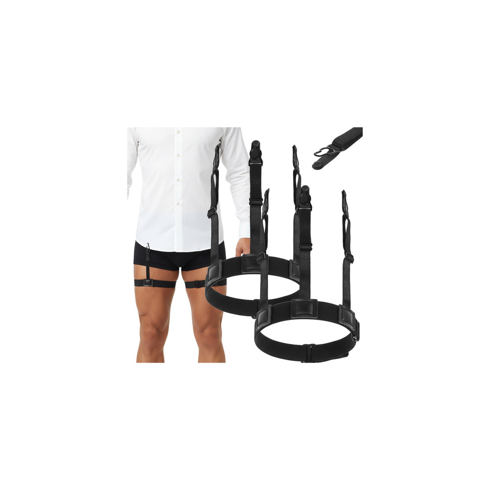 Pánské podvazkové šle vhodné pro pohodlné nošení košile. Košile tak vydrží bezpečně zastrčená v kalhotách i při intenzivním pohybu. Praktické řešení pro muže pracující v kanceláří nebo při jiných příležitostech jako je svatební den. Klipy jsou navrženy tak, aby nepoškodily košili.