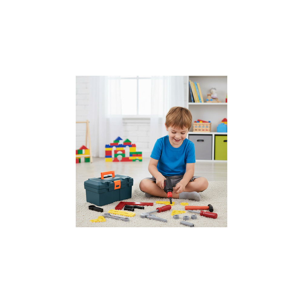 Dětská sada nářadí v praktickém pracovním kufříku. Ideální sada pro malé mechaniky a kutily. Nářadí je vyrobeno realisticky, takže u dětí podporuje představivost a manuální zručnosti. Kufřík usnadňuje skladování a přenášení nářadí.