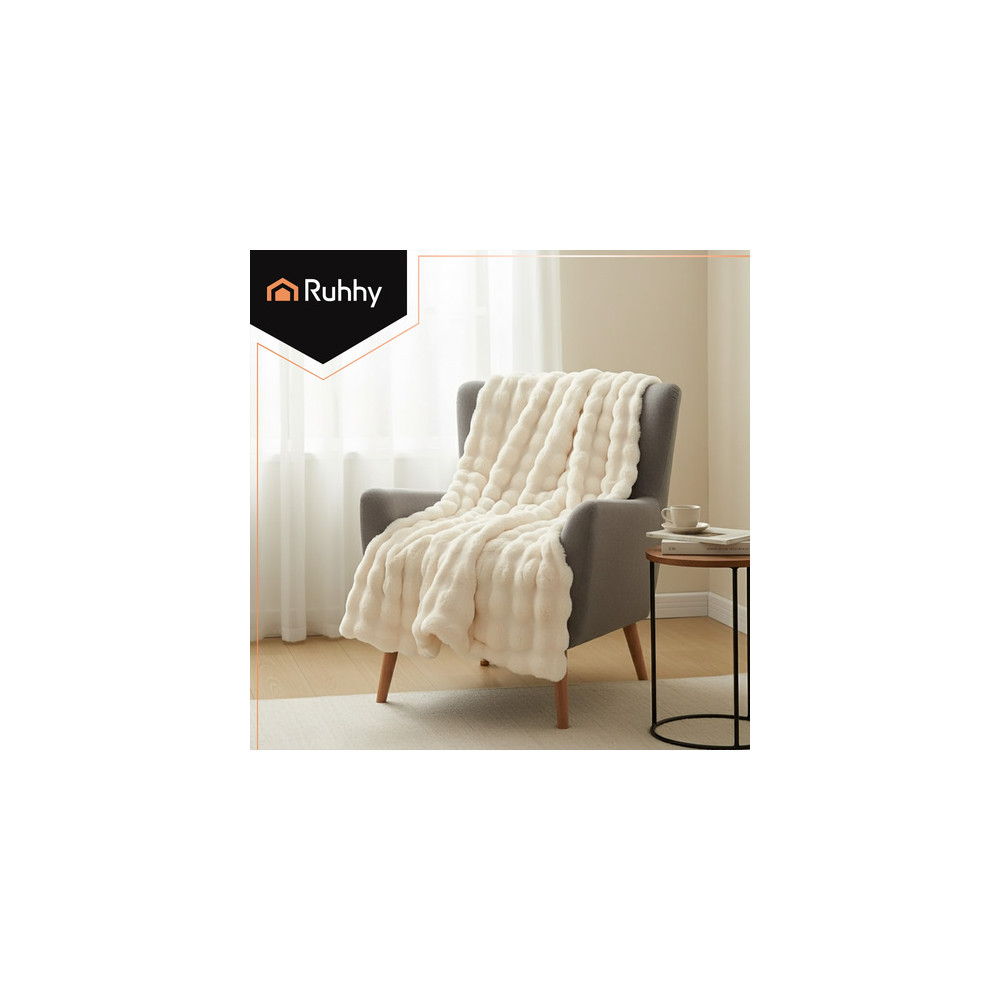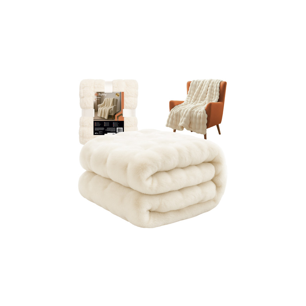 Bílá měkká deka vhodná jako doplněk do každého interiéru. Skvěle poslouží také jako přehoz přes postel nebo jako dekorace na křeslo. Vysoce kvalitní materiál zajišťuje měkkost a odolnost bez ztráty tvaru po vyprání. Z vrchní části je vyrobena z umělé králičí kožešiny, spodní část je z jemného plyše.