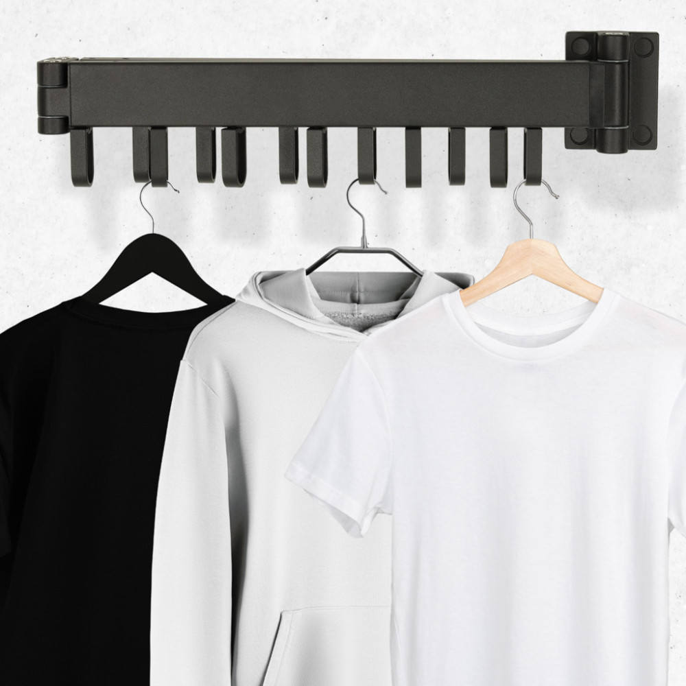 Teleskopický výsuvný nástěnný věšák 114 cm černý
