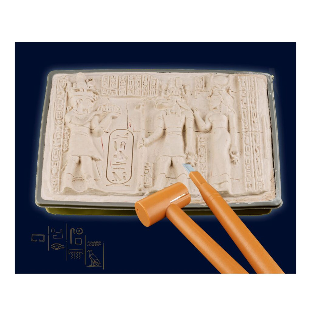 Experimentální sada od značky KOSMOS s tajemstvím nazvané Egyptské vykopávky. Sada obsahuje vše potřebné pro vykopání pokladů ze sádry.