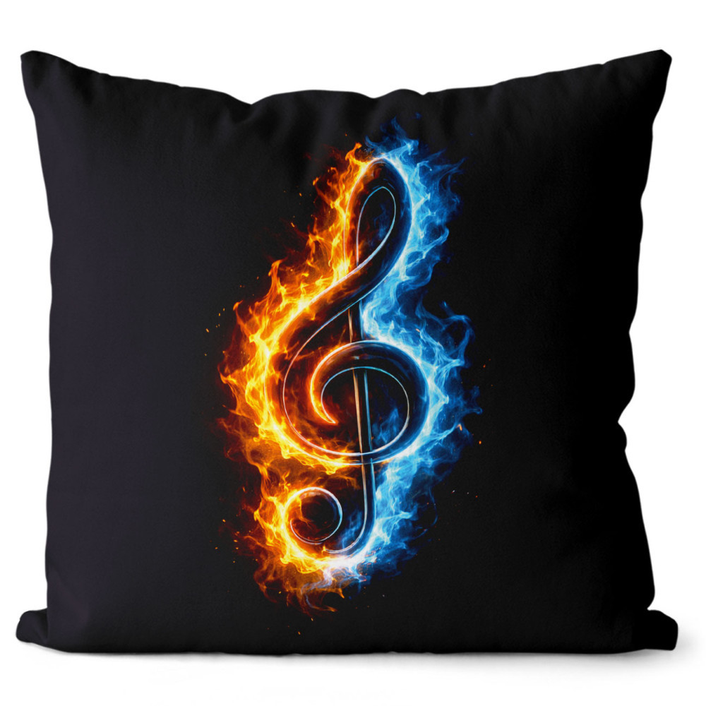 Polštář 40 x 40 cm - Houslový klíč v plamenech