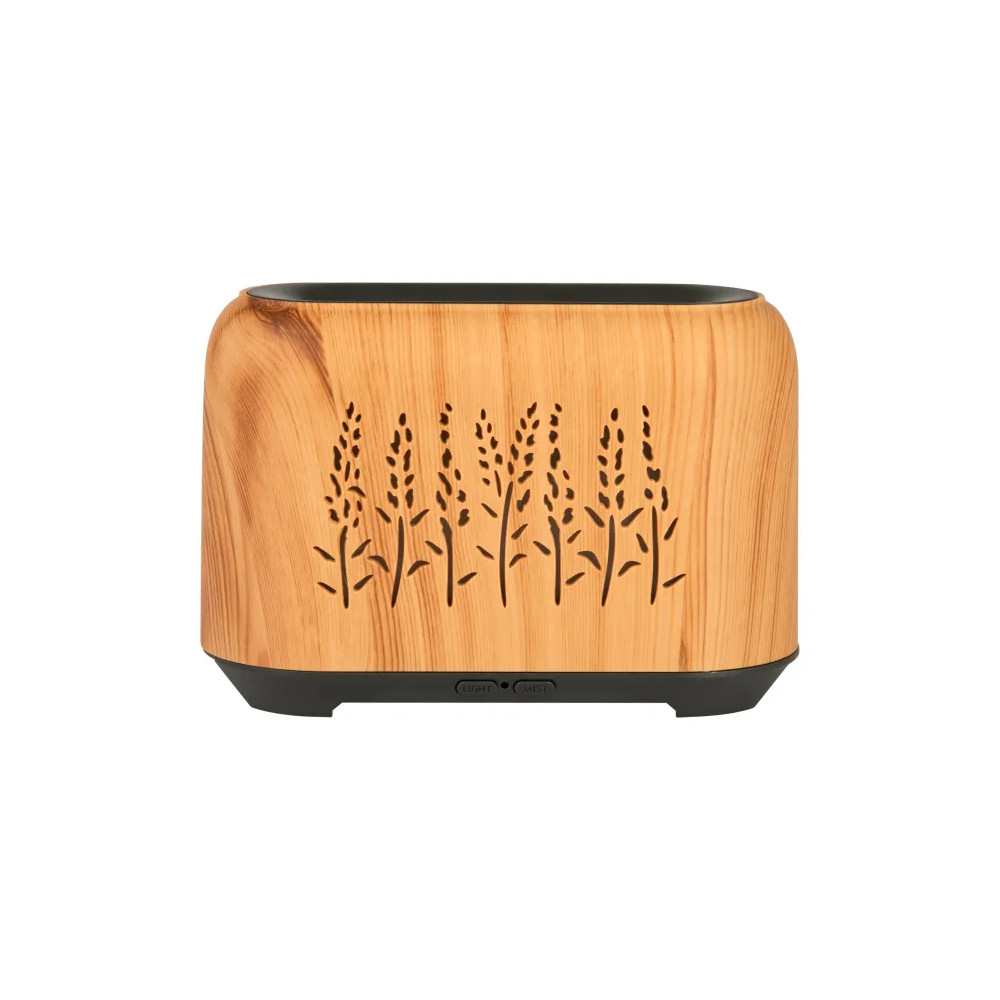 Ultrasonický mini difuzér s motivem levandule jemně zvlhčuje vzduch a vytváří relaxační atmosféru. Je vybaven LED osvětlením s možností stálého teplého světla nebo měnících se barev. Difuzér nabízí možnost nastavení časového vypnutí. Pro správnou funkci se doporučuje používat čisté nebo ve vodě rozpustné oleje, které nejsou součástí balení. Hustota páry závisí na množství vody v nádržce. Díky kompaktním rozměrům nezabere mnoho místa a je vhodný i jako dárek.