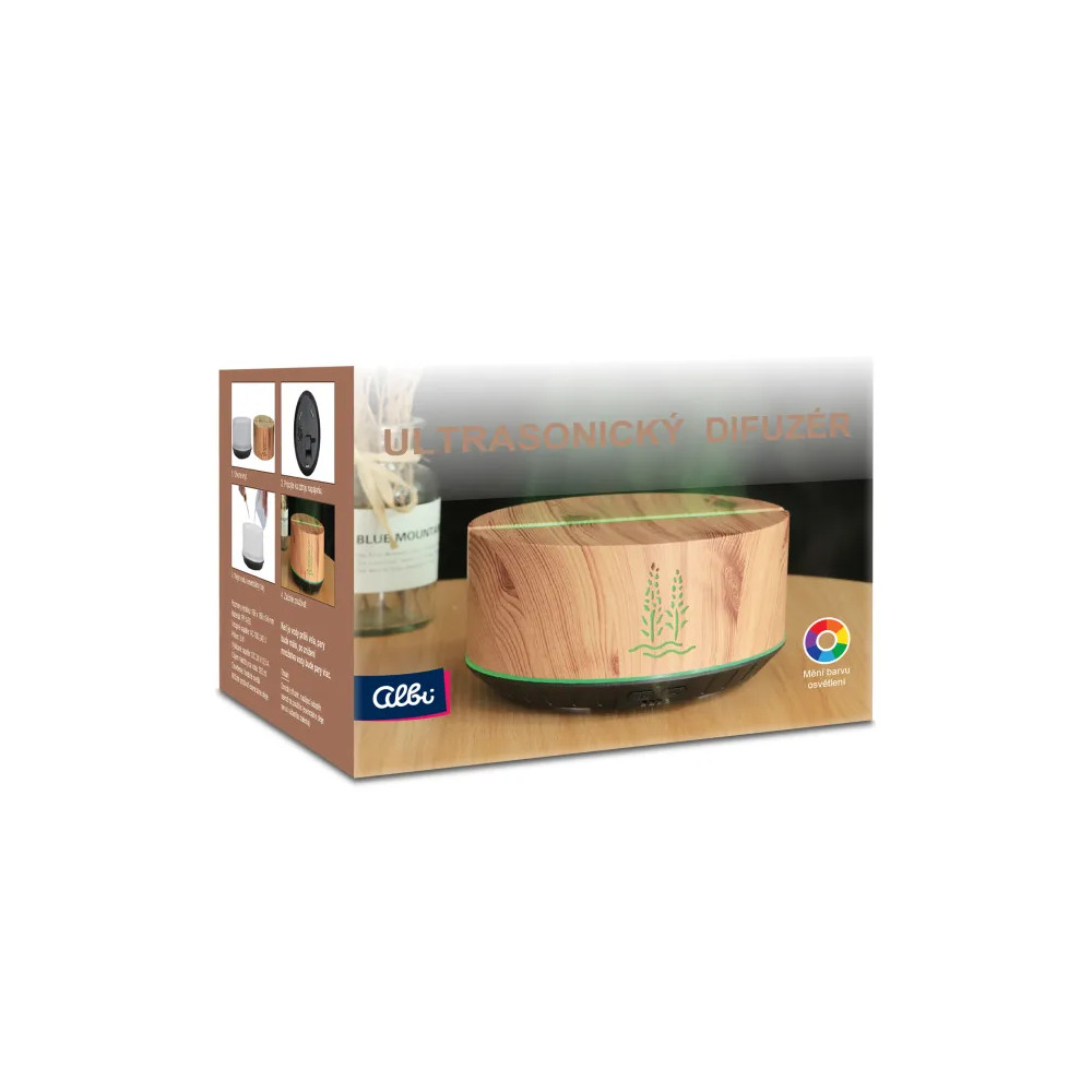 Ultrasonický difuzér s motivem levandule jemně zvlhčuje vzduch a vytváří relaxační atmosféru. Difuzér nabízí tlumené nebo stabilní LED osvětlení a možnost střídání 7 barev a je vybaven časovým režimem automatického vypnutí. Pro správnou funkci se doporučuje používat čisté nebo ve vodě rozpustné oleje, které nejsou součástí balení. Hustota páry závisí na množství vody v nádržce - při nízké hladině vody se difuzér automaticky vypne.