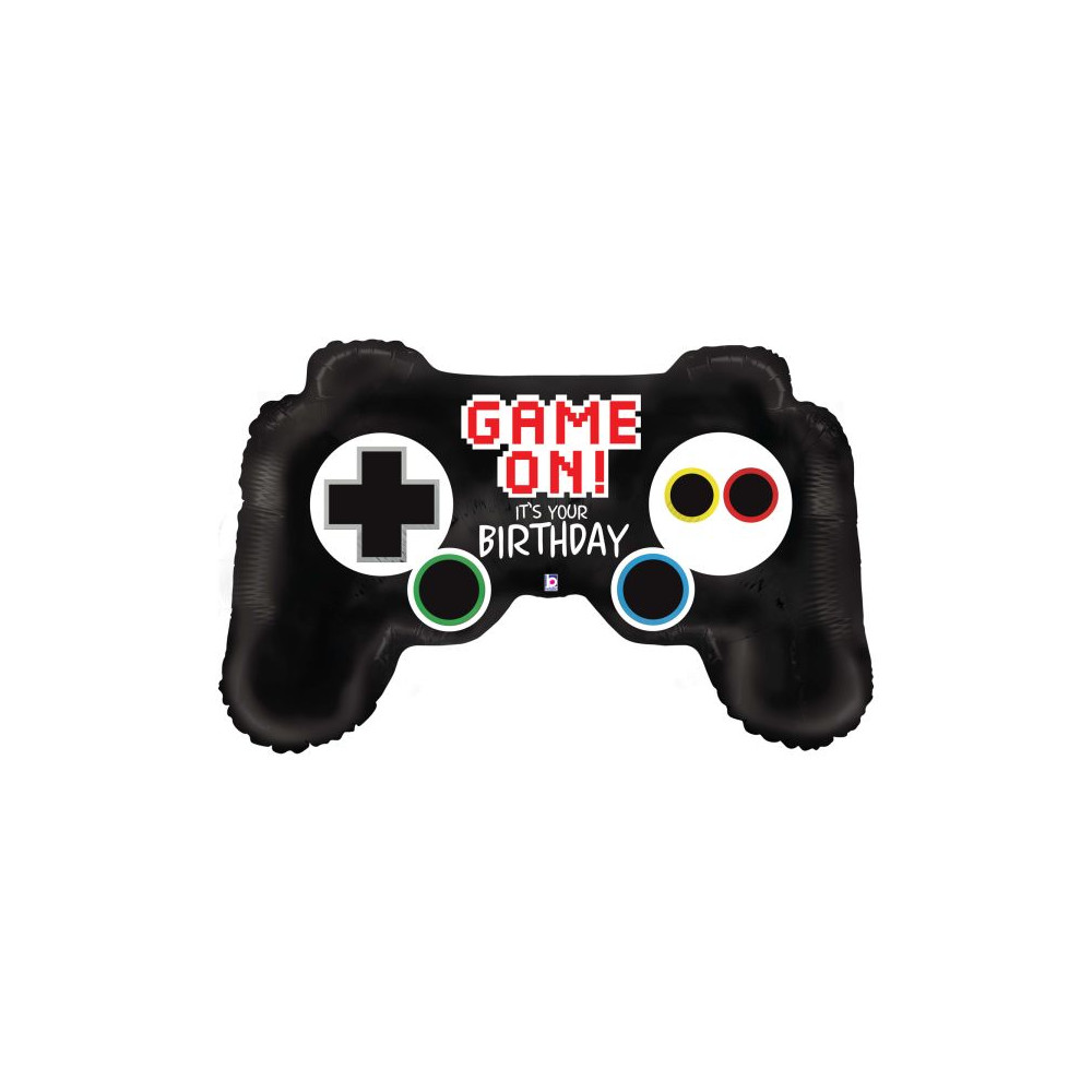 Fóliový balónek ve tvaru herního ovladače s nápisy „Game on!“ a „It's your birthday“ je perfektní dekorací na tematické narozeninové oslavy.
