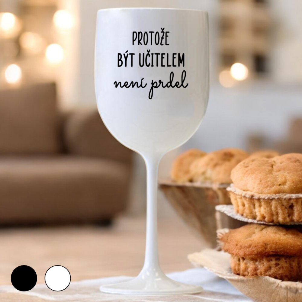 Ahome Sklenice na víno plastová 420 ml - Protože být učitelem není prdel - bílá