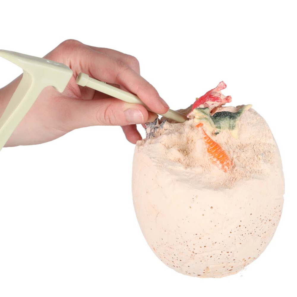 Velké vejce, které v sobě ukrývá 12 figurek dinosaurů k objevení. Stačí jen kladívko, dláto a trocha trpělivosti a můžeš se pustit do dobrodružství ve stylu malého paleontologa. Tato dětská archeologická sada v sobě spojuje vědu, zábavu a vzrušení z odhalování záhad z doby před miliony let! Objevte fascinující svět dinosaurů!