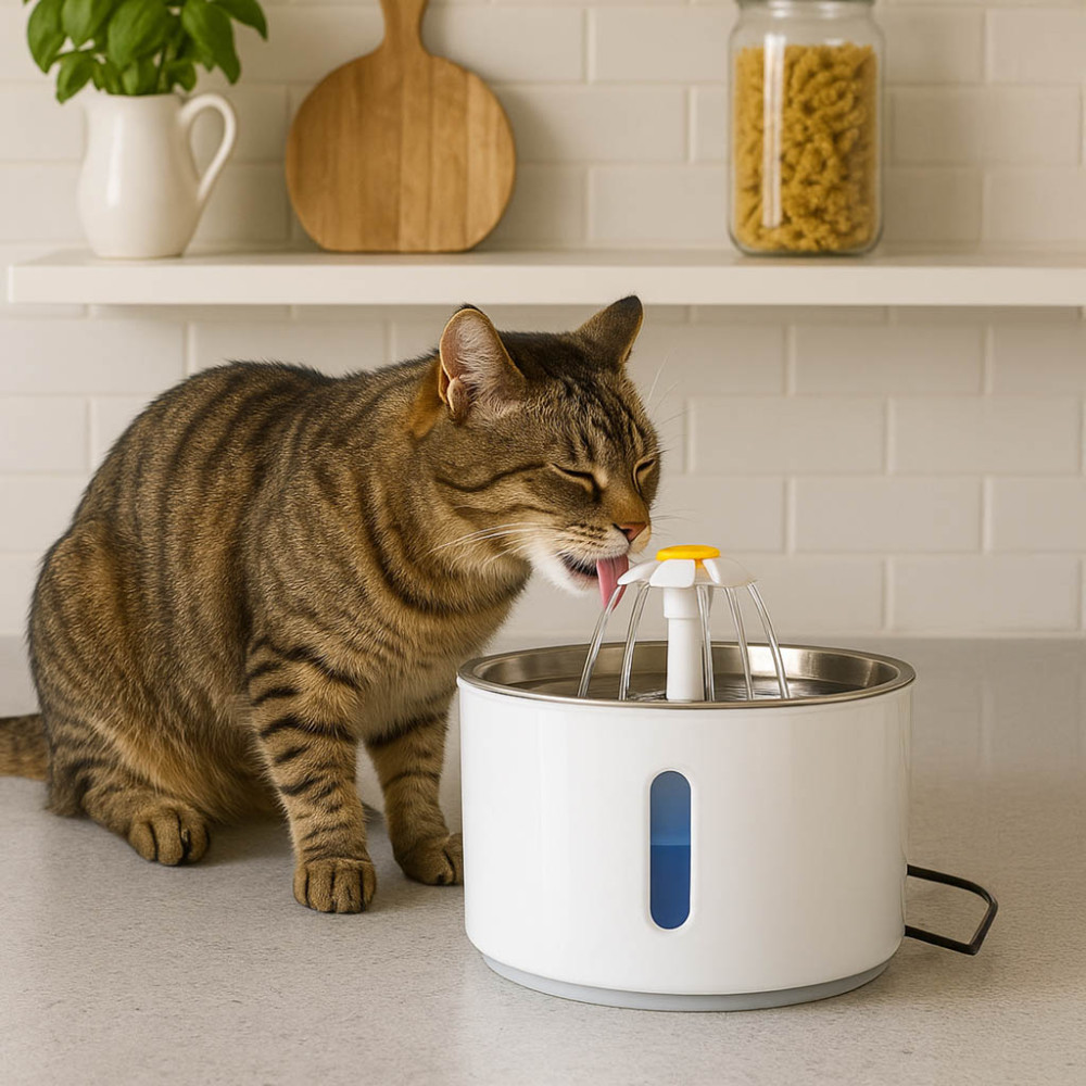 Pítko pro domácí zvířata s automaticým režimem a USB LED fontánou. Zařízení uvádí vodu do neustálého pohybu, aby povzbudilo domácího mazlíčka k pití. Má vyměnitelné filtry s aktivním uhlím. Filtr průběžně odstraňuje z fontánky nečistoty, prach a přetrvávající chlupy. Díky LED osvětlení lze sledovat hladinu vody, takže ji lze v případě potřeby doplnit nebo vyměnit. Chcete-li napáječku použít, naplňte její vnitřní část vodou. Po připojení kabelu USB ke zdroji napájení uvede fontánka vodu do pohybu.