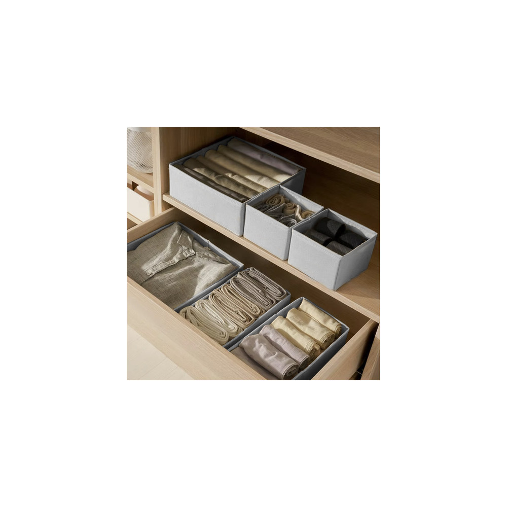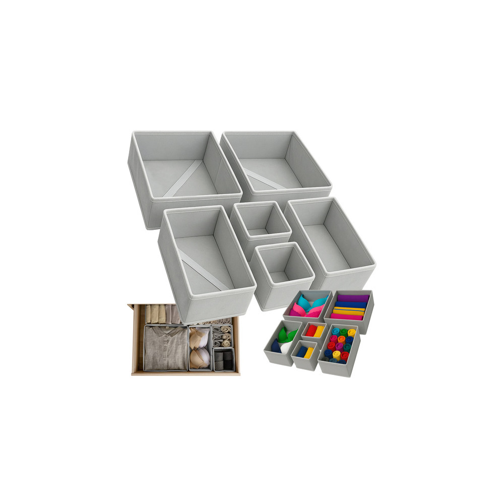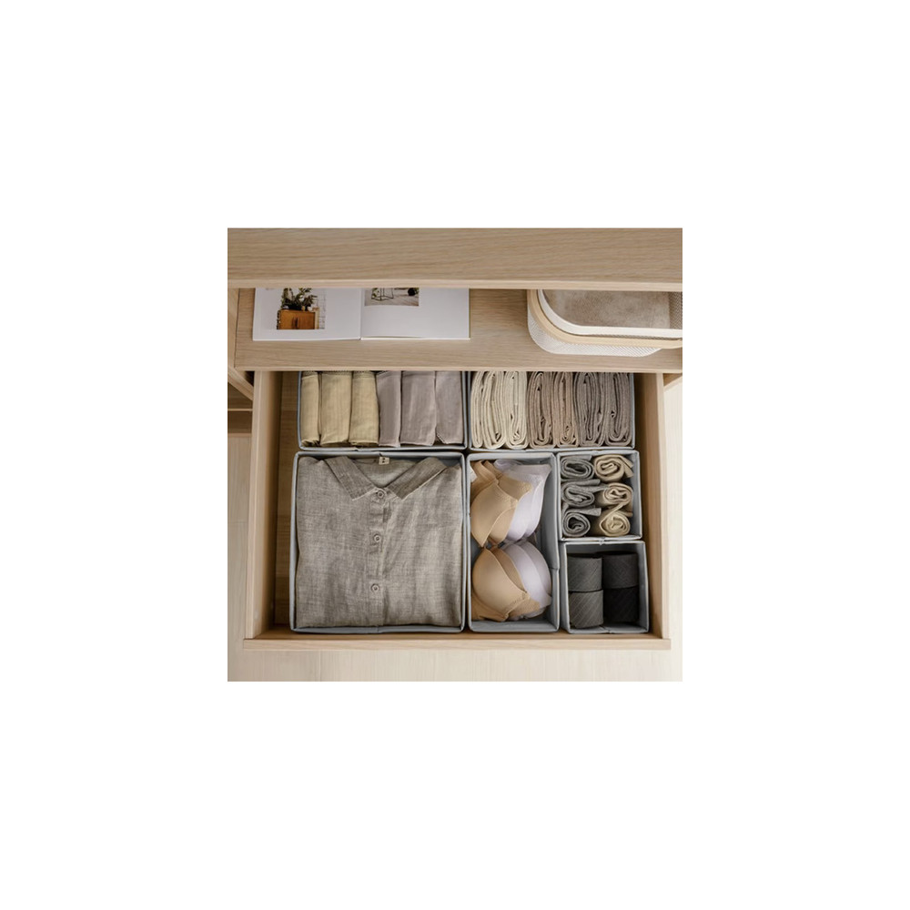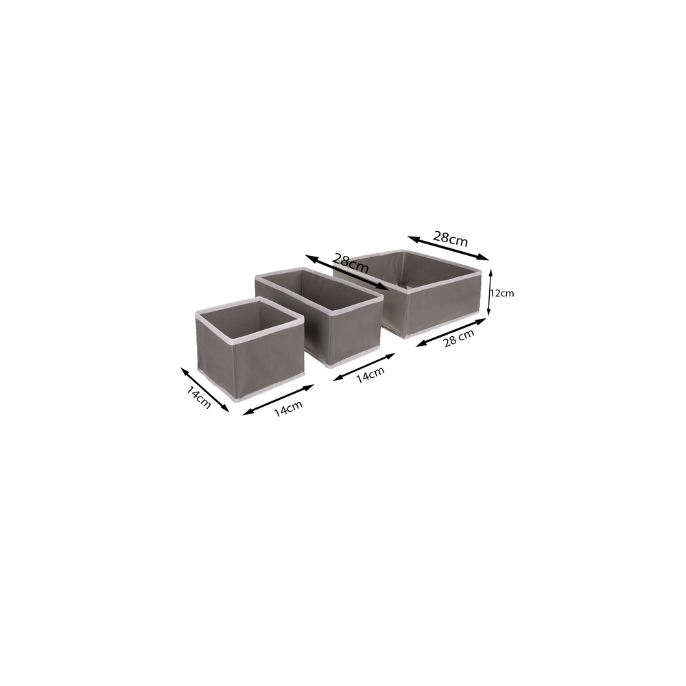Praktické organizéry na spodní prádlo, ponožky a další doplňky. Sada obsahuje celkem 6 organizérů ve třech různých velikostech. Světle šedá barva dodává eleganci a hodí se do každého šatníku.