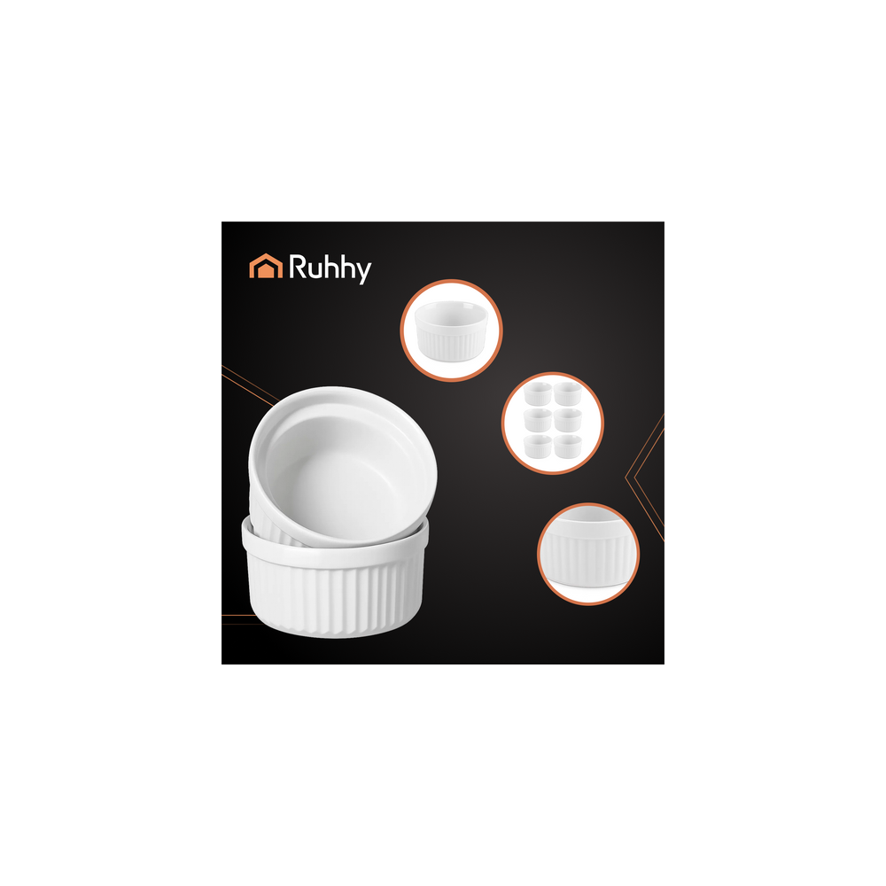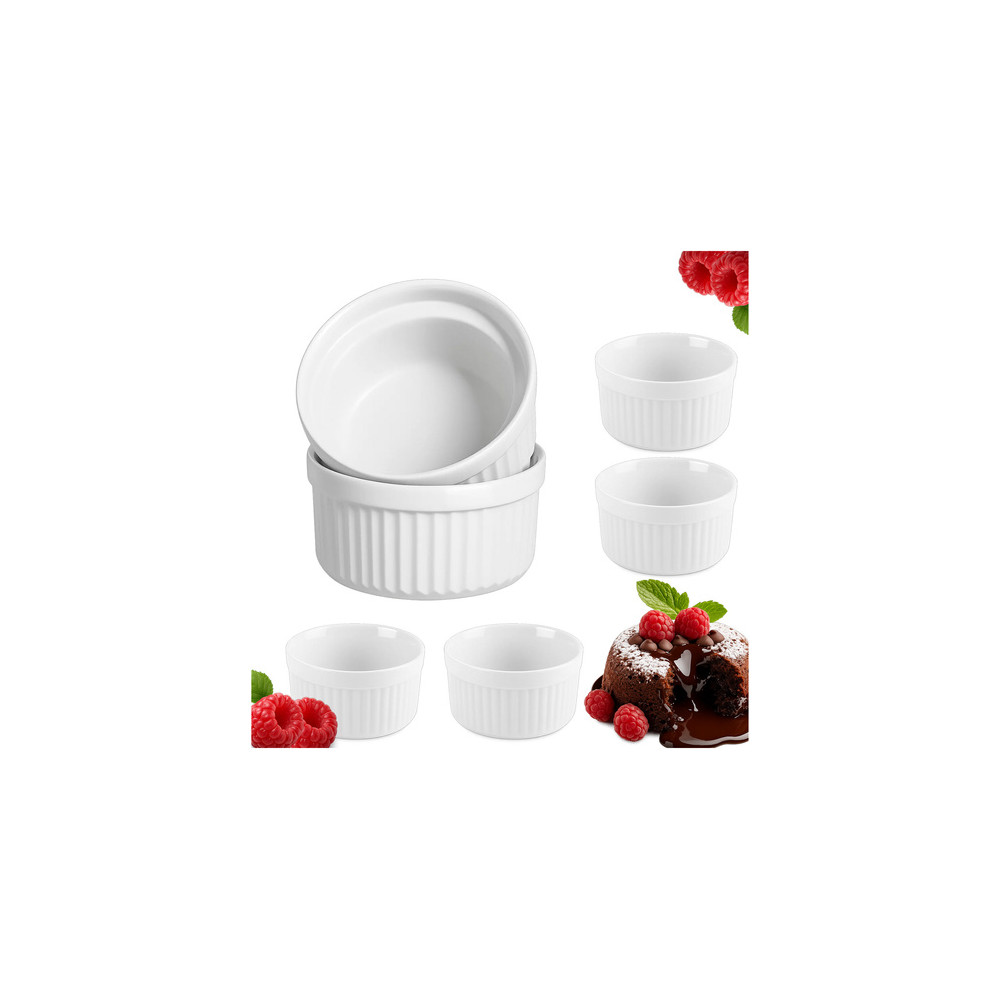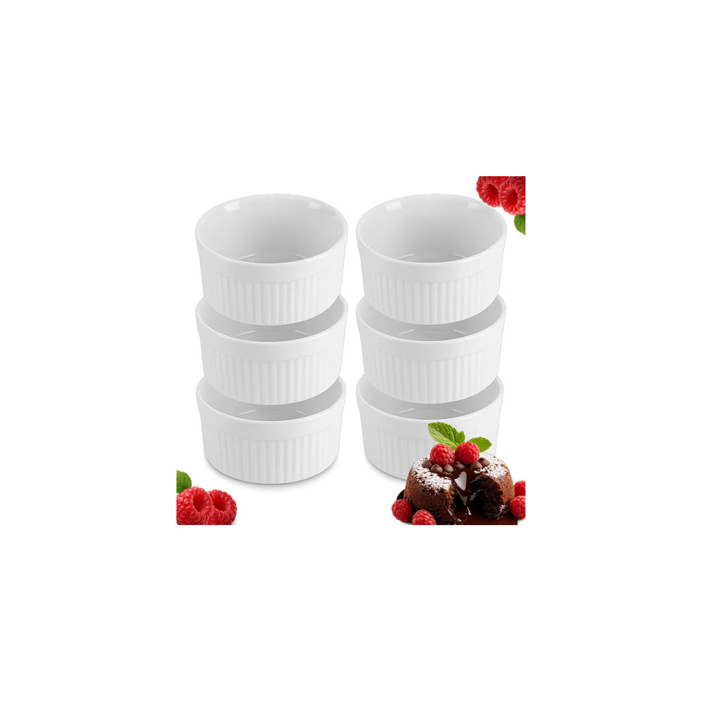 Sada 6 kusů bílých zapékacích formiček na dezerty a jiné pokrmy. Jsou odolné vůči vysokým teplotám, takže se hodí do trouby i mikrovlnky. Lze je použít také jako obyčejné servírovací misky. Jsou vhodné do myčky nádobí.