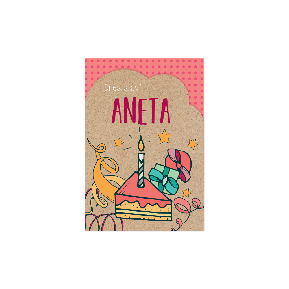 Barevné přání  ke svátku, přání mají nejčastější česká jména. Obálka je součástí balení.