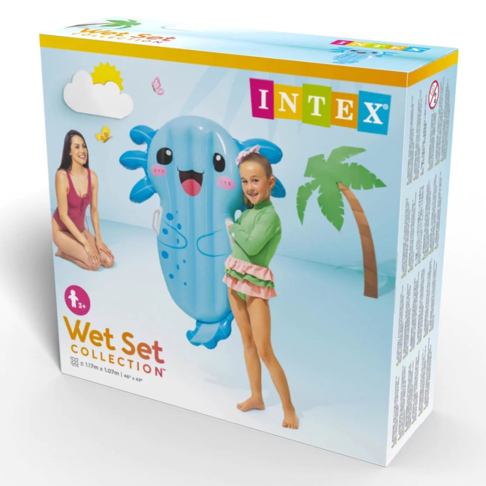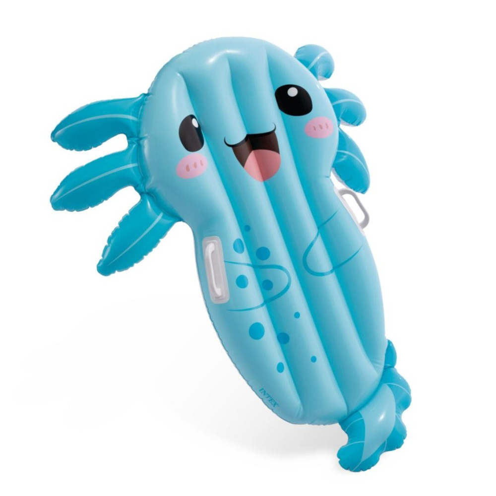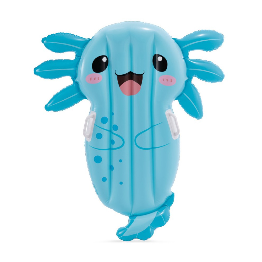 Nafukovací lehátko ve tvaru roztomilého axolotla s praktickými úchyty pro lepší stabilitu. Ideální pro menší děti do bazénu a k moři.