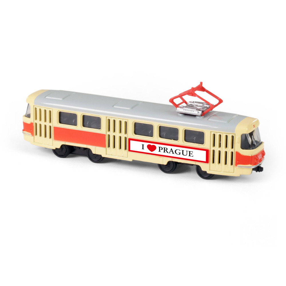 Originální kovová tramvaj v červeno-bílém provedení je to pravé do tvé sbírky dopravních prostředků. Tramvaj jezdí na zpětný chod. Tento retro kousek s motivem Prahy je ideálním dárkem pro všechny milovníky tramvají. Měřítko: 1:87