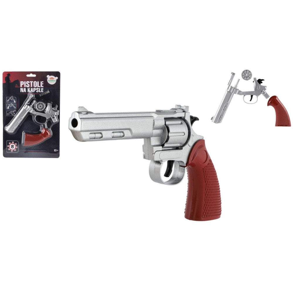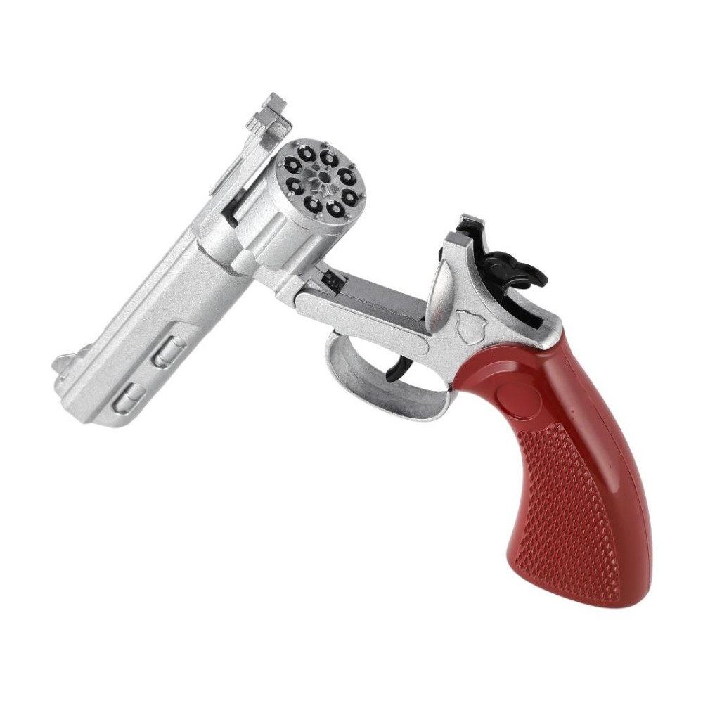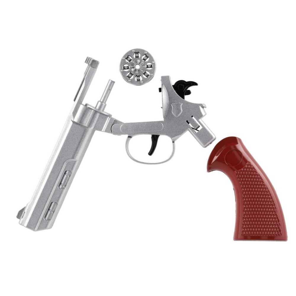 Revolver vhodný jako doplněk ke kostýmům nebo pro tematickou hru. Hračka je určena pouze ke hře, nevystřeluje projektily. Doporučeno používat pod dohledem dospělé osoby.