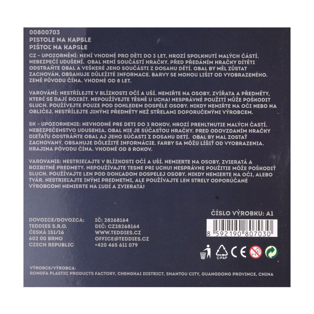 Kovová pistole na kapsle je oblíbenou hračkou pro děti, které mají rády dobrodružnou hru a realistické doplňky. Díky kovovému provedení působí autenticky a je odolná při běžném hraní. Pistole je určena pro kapsle s 8 ranami, které po stisknutí spouště vytvářejí zvukový efekt. Ergonomicky tvarovaná rukojeť dobře padne do ruky a umožňuje pohodlnou manipulaci.